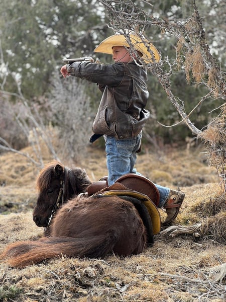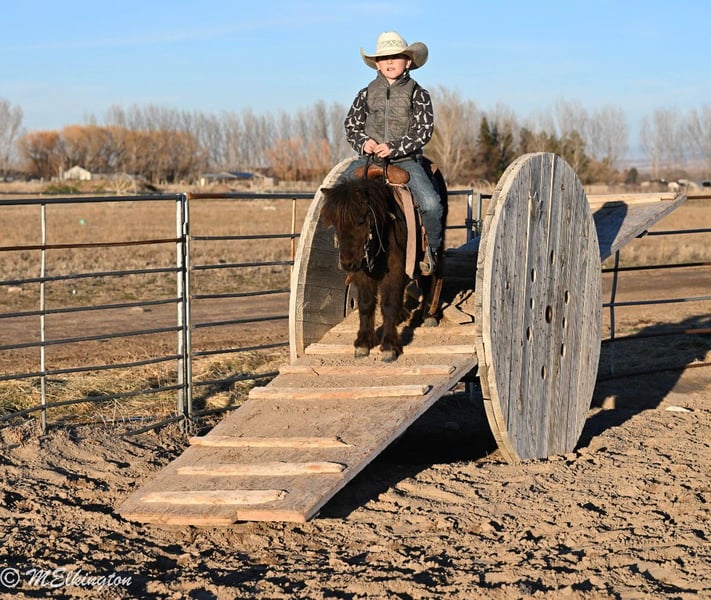 🌟𝑨𝒑𝒓𝒊𝒍 𝐀𝐋𝐋 𝐒𝐓𝐀𝐑 𝐋𝐈𝐍𝐄𝐔𝐏🌟 Happening now thru MONDAY | APRIL 6th - Available EXCLUSIVELY on HorseBid's website! For more details and to register visit: www.Horsebid.com CONSIGNOR CONTACT: 4 Spades Ranch 208-313-5646 LOCATION: Rigby, ID BREED: Pony REGISTERED: No COLOR: Brown HEIGHT: 34 AGE: 7 GENDER: Gelding Pickles is the kind of pony everyone hopes to find but rarely does. This 7-year-old brown gelding is the definition of a true children’s pony—safe, seasoned, and exceptionally versatile. Pickles has been thoughtfully used and exposed to just about everything a family could want. He has been ridden out on the trails, is completely comfortable around obstacles, and will quietly go over, around, and through whatever is asked of him. He is trained to lay down and has been desensitized to gunfire, handling it with confidence and composure. In addition to riding, Pickles is broke to drive and has been driven through neighborhoods, down the road, and even on trips to Grandma’s house. He is gentle and kind-minded, making him suitable for even the littlest handlers—he has been led, groomed, loved, and ridden by young children with ease. And if your little cowboy thinks he’s the next John Wayne, Pickles is the mount he’s been dreaming of. These boys have ridden him all over the mountain—chasing outlaws, shooting the bad guys, and saving the day—building confidence, imagination, and a whole lot of memories along the way. He’s also the kind that makes kids feel like entrepreneurs. Our 8-year-old took Pickles to the horse expo and proudly led him through the booths giving pony rides—charging a dollar a ride. He came home with a fistful of cash and the biggest grin you’ve ever seen. At one point, a kind lady even tipped him $5 just to let Pickles take a break for 15 minutes. That’s the kind of pony he is—safe, steady, and loved wherever he goes. What truly sets Pickles apart is his demeanor. He is patient, forgiving, and kind, giving young riders the confidence they need while still being fun and capable enough to grow with them. Whether it’s a first pony, a step-up mount, or a dependable family pony that can do a little bit of everything, Pickles checks every box. If you’re searching for that hard-to-find, all-around children’s pony with the mind, training, and experience to match—Pickles is your guy.