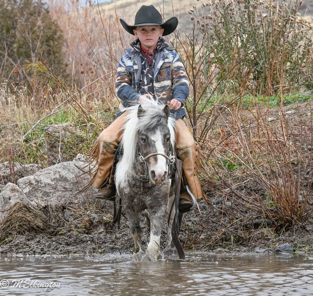 🎁 𝐈𝐍 𝐓𝐈𝐌𝐄 𝐅𝐎𝐑 𝑪𝒉𝒓𝒊𝒔𝒕𝒎𝒂𝒔 🎁 Happening now thru TUESDAY | DECEMBER 9th - Available EXCLUSIVELY on Ponybid's website! For more details and to register visit: www.Ponybid.com CONSIGNOR CONTACT: 4 Spades Ranch 208-705-6540 LOCATION: Rigby, ID BREED: Pony REGISTERED: No COLOR: Appaloosa HEIGHT: 36" AGE: 6 GENDER: Gelding Wait till you see this pony in person he’s a true looker. Aussie doesn’t just turn heads; he turns work into fun. He’s the whole package: good-minded, confident, and a genuine pleasure to ride, standing 36 inches tall and only 6 years old. Aussie is as cute as a button and handier than the pocket on your shirt. He's got one blue and one brown eye and all speckled up. He's a little Aussie puppy in a ponies body! This pony carries himself with the kind of confidence you can feel from the saddle. He’s safe, steady, and knows his job. Aussie has been used for daily ranch work, pushing cattle, trail riding, and even roping the sled. He’s been around all the commotion rodeos, kids, dogs, and chaos and takes it all in stride. He’s crosses water, carries the flag, goes over teeter-totter, and even lays down like a dog. You can shoot a BB gun off him, tie him to the trailer, or let the kids crawl all over him nothing rattles this pony. Not to mention he has the sweetest little lope too. Our boys ask a lot out of there ponies. And good ponies come from even better hands. If you’re looking for a solid, broke, and good-looking pony that’s always a top hand for his rider, Aussie is your guy.