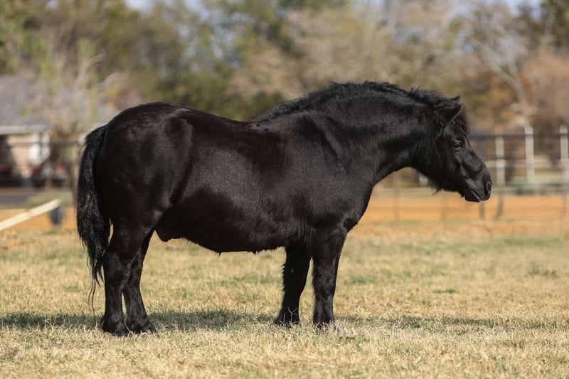 🎁 𝐈𝐍 𝐓𝐈𝐌𝐄 𝐅𝐎𝐑 𝑪𝒉𝒓𝒊𝒔𝒕𝒎𝒂𝒔 🎁 Happening now thru TUESDAY | DECEMBER 9th - Available EXCLUSIVELY on Ponybid's website! For more details and to register visit: www.Ponybid.com CONSIGNOR CONTACT: Ponies & Ponytails 727-741-0559 LOCATION: Cleburne, TX BREED: Draft pony REGISTERED: No COLOR: Black HEIGHT: 10.3 AGE: 8 GENDER: Gelding If you’ve ever dreamed of having a draft horse for the kiddos.. look no further!! Little Porkchop looks like you left the Percheron in the dryer too long! 8yrs old standing a whopping 10.3h tall he’s is legitimately as wide as he is tall!! Porkchop is the ultimate trail pony for the kiddos! He is perfect from the leadline, to the ponying from the big horses to teaching the kiddos to ride out alone! He goes anywhere you point him and follows the big horses over, under and through anything! Little Porkchop will not only pack the little western saddle but he also rides English and bareback as well. He even goes over the little jumps!! Easy to walk, trot, canter for the kiddos and catches his leads. Porkchop is great on the ground. He stands quietly for grooming, washing and saddling. He’s also great for fly spray and show sheen. Porkchop has a very friendly, very bubbly personality. He loves attention, he loves being brushed and obviously he loves getting cookies! Porkchop is a very easy keeper. He’s currently eating just a little alfalfa hay twice a day. No grain or supplements. Porkchop has excellent feet also. UTD on trimming and absolutely NO signs of founder in this little man! No bad habits or vices. No buck, kick, rear, bite or bolt. CHRISTMAS BOARDING AVAILABLE: We are offering boarding until Christmas time to really surprise the kiddos! If you need a place to stash your new stocking stuffer we can certainly make that happen!
