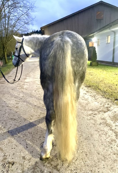 Our sweet Jupiter is still used in our riding school and is looking for a new home as a dressage and leisure horse due to a reduction in stock. He has been ridden by young people both in the arena and on trails. He is also used as a lunge horse with us. He is very well-behaved in handling, is shoeing and loading friendly, and has been regularly vaccinated and dewormed with us.