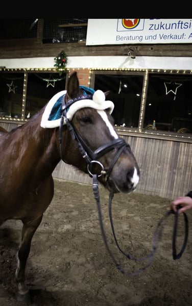 Zum Verkauf steht der hübsche Dunkelfuchs-Wallach Piko, 9 Jahre alt, ca. 1,40 m groß. Er besitzt einen litauischen Pass und gehört der seltenen Rasse Zemaitukas (nordosteuropäische Ponyrasse) an. Piko ist für fortgeschrittene Reiter geeignet. Er kennt das Reiten in der Halle sowie auf dem Außenplatz und zeigt sich dabei motiviert und arbeitsfreudig. Besonders viel Freude hat er an der Stangen- und Cavalettiarbeit und macht auch einen kleinen Sprung. Ein schicker, vielseitiger Wallach, der Spaß an der Arbeit hat.