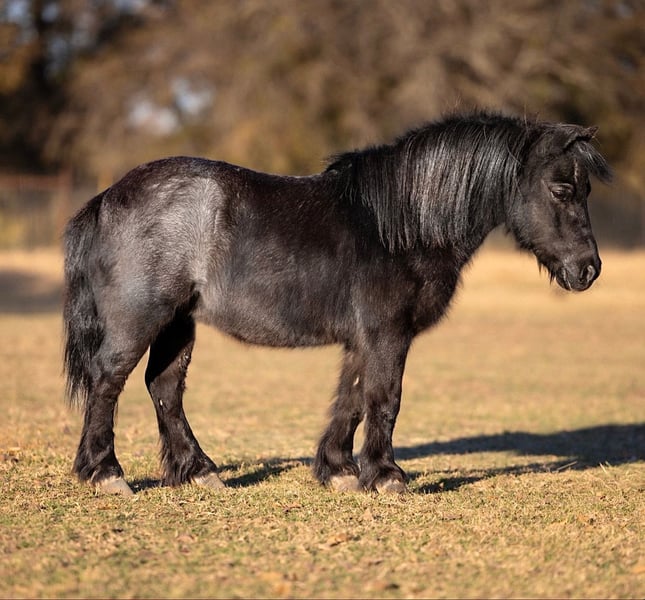 🎁 𝐈𝐍 𝐓𝐈𝐌𝐄 𝐅𝐎𝐑 𝑪𝒉𝒓𝒊𝒔𝒕𝒎𝒂𝒔 🎁 Happening now thru TUESDAY | DECEMBER 9th - Available EXCLUSIVELY on Ponybid's website! For more details and to register visit: www.Ponybid.com CONSIGNOR CONTACT: Wyatt Williams Ponies 817-901-4068 LOCATION: Weatherford, TX BREED: Miniature Pony REGISTERED: No REGISTERED NAME: Shotgun COLOR: Blue Roan HEIGHT: 36" AGE: 8 GENDER: Gelding Shotgun is the cutest fun size mini pony! He is a very well mannered pony with a gentle and sweet personality. He is great for very young kids who are just beginning, all the way up to more experienced kids. He lead lines and rides out on his own. He is friendly and kind natured. My little kids crawl all over him in his stall and he is always gentle and kind. Shotgun has been rode outside and in arenas. We have three kids, all under 8 years old and he has been perfectly safe around all three of them. He has been rode bareback and with a saddle. Shotgun can also pull a cart/wagon. He has been proven safe in multiple places and multiple locations with a lot of noise going on and nothing bothers him. He does whatever is asked of him, including walking, trotting, loping, stopping and turning. My kids can chase cattle up on him, open and close gates, go through the barrel pattern and more. He doesn't get fresh. He stands tied well with good ground manners. He is great to catch in a big pasture, and easy to load and unload in a trailer. He really is the perfect pony as he will lead line, pull a cart, ride off on his own and keep up with the other horses! His feet are in good shape. He is good to shoe. This pony has also seen the sights in cow town in Fort Worth, and traveled to jackpots in Oklahoma and more! He is not bothered by anything. He is not watchy or spooky at all. He is not buddy sour. He will go wherever your little one puts him no matter the experience. He is great for all levels. No bad habits. Good to bathe, load, trim, and catch.