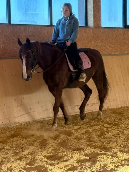 Zum Verkauf steht diese schöne 12,5-jährige Welsh-Cob-Stute mit Abstammung und einem Stockmaß von ca. 152 cm. Sie ist im Umgang sehr brav und zeigt sich auch beim Reiten zuverlässig. Aktuell wird sie wieder schonend antrainiert, da sie aufgrund der Schwangerschaft der Besitzerin eine längere Reitpause hatte. Nach unserer Einschätzung ist sie bei sicherem Beherrschen aller drei Grundgangarten auch gut für Wiedereinsteiger geeignet. Zudem saßen bei uns bereits Anfänger an der Longe auf ihr, wobei sie sich stets ruhig und zuverlässig gezeigt hat. Auch im Umgang ist sie sehr angenehm: Kinder können sie problemlos händeln und putzen. Sie wurde außerdem von einem Pferdechiropraktiker behandelt. Wir wünschen uns für sie ein liebevolles neues Zuhause bei jemandem, der ihr die nötige Zeit gibt, um anzukommen, und der mit ihr ein echtes Team werden möchte. Für das Vorstellen bzw. Probereiten berechnen wir 25 €, die beim Kauf selbstverständlich vollständig erstattet werden.