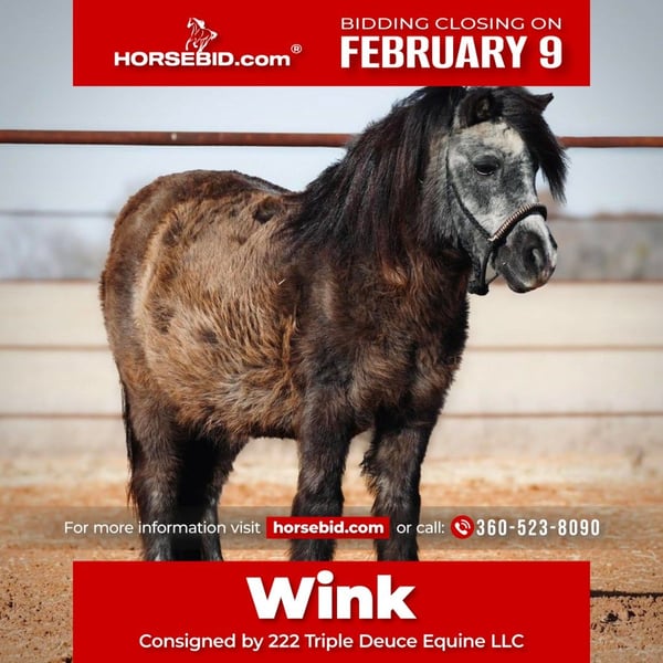 ❤️🔥𝑩𝒆 𝑴𝒊𝒏𝒆 𝐒𝐄𝐋𝐄𝐂𝐓❤️🔥 Happening now thru MONDAY | FEBRUARY 9th - Available EXCLUSIVELY on HorseBid's website! For more details and to register visit: www.Horsebid.com CONSIGNOR CONTACT: 222 Triple Deuce Equine LLC 360-523-8090 LOCATION: Cisco TX BREED: Pony REGISTERED: No COLOR: Black HEIGHT: 37 Inches AGE: 13 GENDER: Mare Wink Here is a very gentle little mare pony! She is suitable for leadline or can be ridden alone at a very slow pace. Great for toddlers and little kids who don’t have much experience around horses at all! She is one they can learn to catch, lead, brush, load, and saddle without your help! She has been ridden double, single, and has been pulled all around by all ages and sizes in the lesson program. A great starter pony for kids to gain confidence being around. Wink is a very sweet girl, and her ONLY flaw is that she is blind in one eye. It has been that way for most of her life and doesn’t affect her in any way! You’d never know the difference, she is more gentle than most ponies with two eyes! 👀 Wink is located in Cisco, TX. Shipping available nationwide Current Negative Coggins 360-523-8090