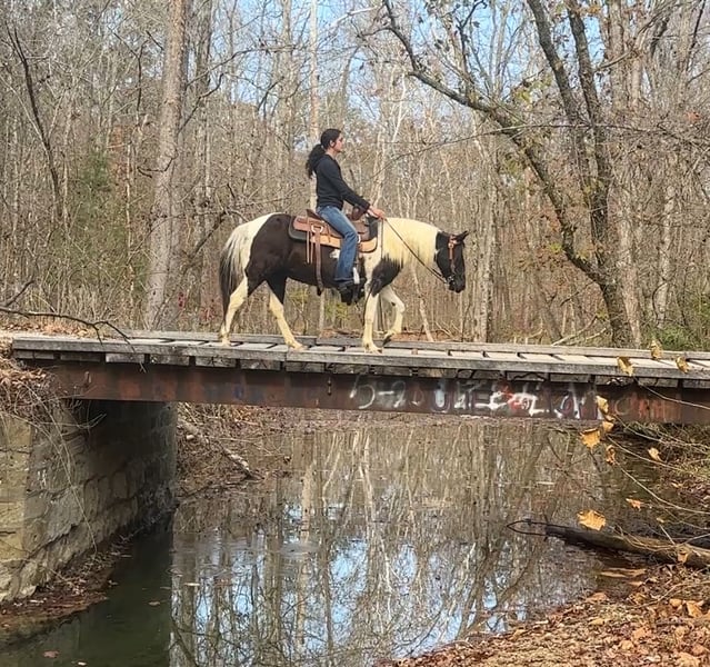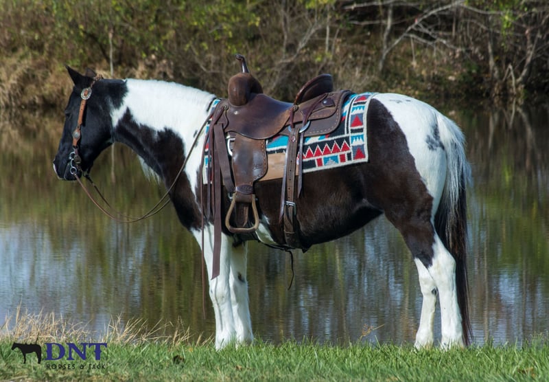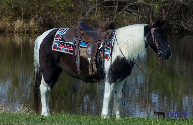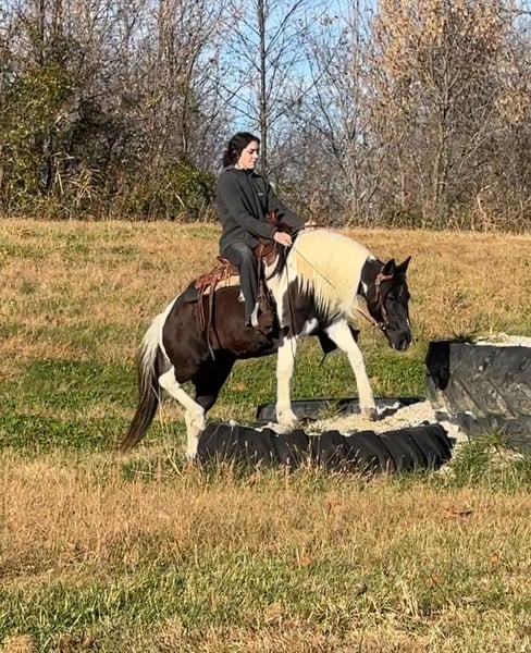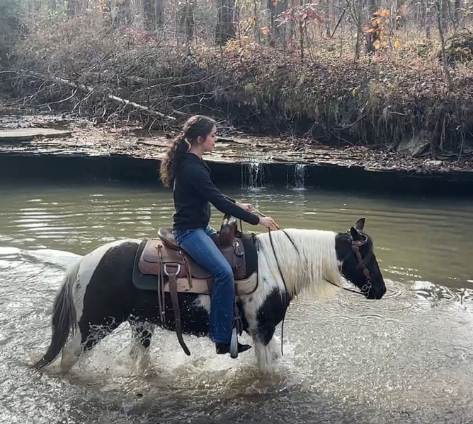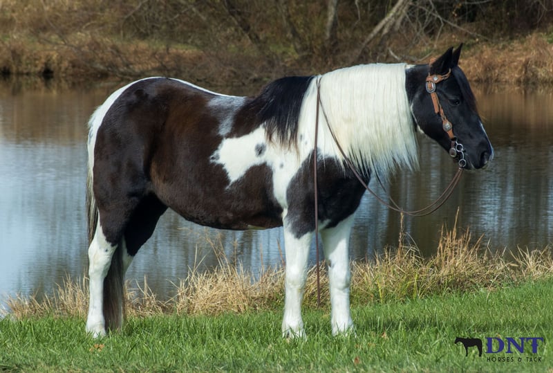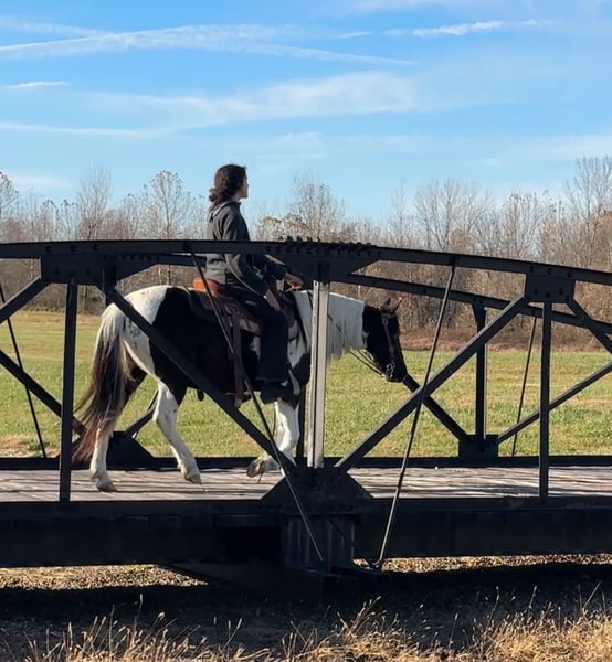 🎄𝐓𝐇𝐄 𝑯𝒐𝒍𝒊𝒅𝒂𝒚 𝐂𝐋𝐀𝐒𝐒𝐈𝐂🎄 Happening now thru MONDAY | DECEMBER 15th - Available EXCLUSIVELY on HorseBid's website! For more details and to register visit: www.Horsebid.com CONSIGNOR CONTACT: Tasha Ijames 270-844-2400 LOCATION: Henderson, KY BREED: Pony REGISTERED: No COLOR: Pinto HEIGHT: 12.3 AGE: 13 GENDER: Mare Cookie is a 13yr old black & white pinto pony mare standing 12.3hh. Cookie is broke, broke, broke for the little kids, bigger kids, and most adults. Cookie has spent her summer at a camp for kids where she was their trail companion and took care of each and every one of them. She is out standing on the trails and has been trail ridden extensively through many different types of terrain. She is sure footed and honest. Cookie is not spooky and will do all the obstacles, cross creeks, go through any body type of water, thick brush, logs, bridges, rough terrain, up and down cliffs with ease and will take care of her rider. Cookie is absolutely traffic safe on the roads. The dogs, heavy machinery, motorcycles and ATV’s does not upset her. You can ride Cookie out alone with ease or with other horses. Cookie has been ridden in the local parades, through drive ins and even through tractor supply. She loves all the attention she gets. Cookie will walk, trot and canter when asked but she prefers to just walk along. She will neck rein like a big horse or you can ride her two handed. Cookie has also been taken to local cattle sortings and loved it. She will stand still for you to get on her. She stands to be groomed, fly spray, stands still to be saddled, takes the bridle with ease, bathes good, loads like a dream, clips great, and stands for the farrier. Cookie is as close to perfect as one can get to take for a ride and teach kids the ropes. If you’re looking for a safe pony! Don’t miss out on Cookie. She’s looking for her forever home to please them kids. We invite anyone and everyone to come meet and ride Cookie at our barn in Henderson, Kentucky. We are happy to assist with transportation arrangements. PPE are welcomed at buyers expense. For any questions about Cookie please contact Tasha 270-844-2400