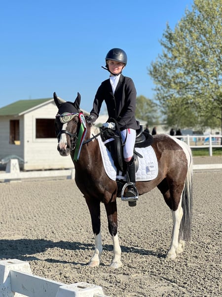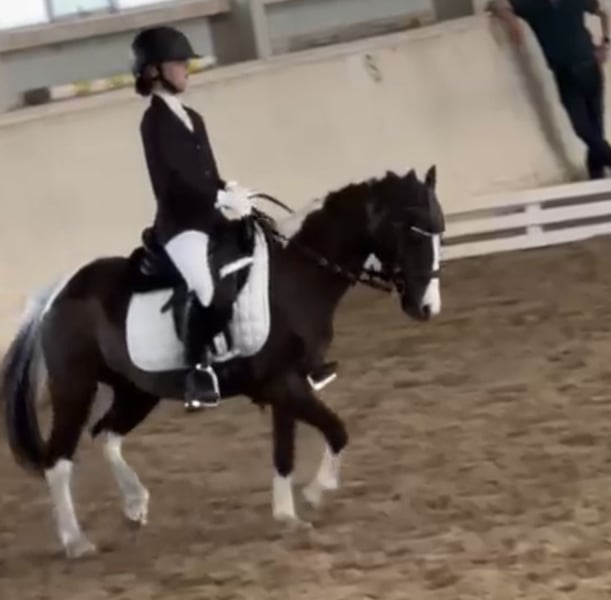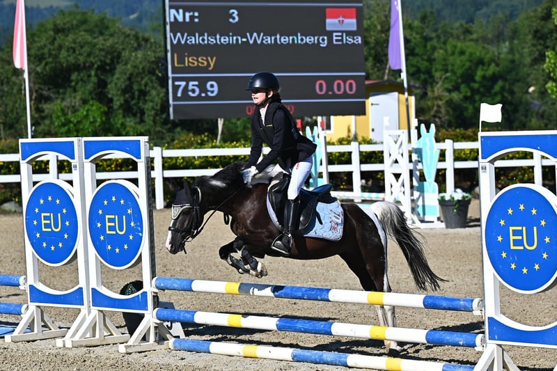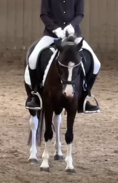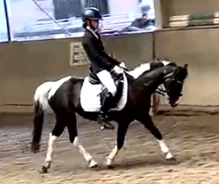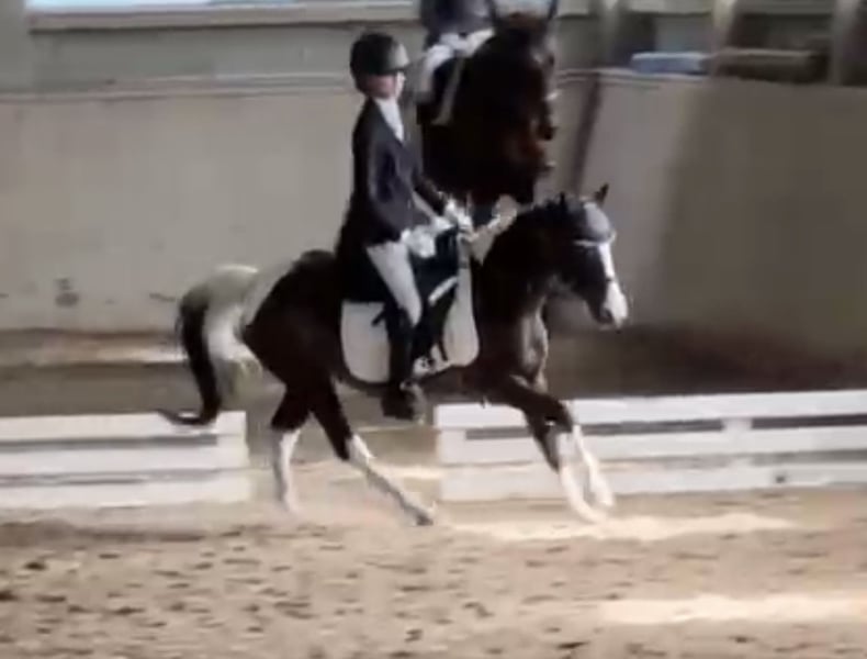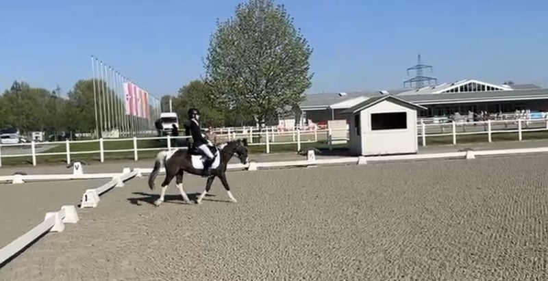 Bildschöne Rappscheckstute, 118cm sucht ein neues Zuhause. Diese Bildschöne Dame eignet sich für Alles. Sie beherrscht Dressur Springen Kutschieren und sogar Schwimmen hat sie in Ihrem Repertoire. Sie lässt sich ebenfalls brav ausreiten und longieren mit Kindern. Sie konnte bereits Turniererfahrung sammeln, bei diversen Dressur und Springturnieren. In der Dressur erreichte sie Traumnoten mit 7,9 und beherrscht sie alle Lektionen der Klasse Lm und Wechsel im Galopp. Mit einem absolut einwandfreiem Charakter können Sie sich sicher sein, dass Sie hier auf das richtige Pony setzen. Sie steht derzeit in Wien im Prater und kann gerne jederzeit besichtigt werden . Umfangreiches Videomaterial vorhanden, kann gerne gesendet werden.