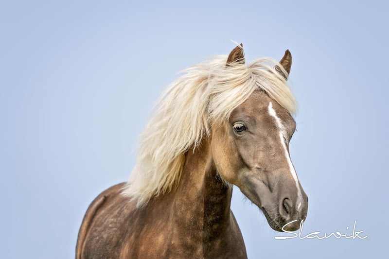 Lillifee is a Welsh Pony mare with a special coat pattern in Kohlfuchs pinto coloring. She is familiar with foal handling and the Schmid method and is accustomed to children.