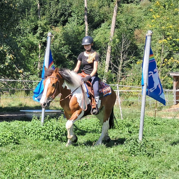 Kora, un poney à tomber amoureux ! Jolie jument au grand cœur, amicale, proche des humains, toujours désireuse et volontaire, belle apparence, facile à monter, très confortable à cheval, absolument sans problème en troupeau, il faut vraiment la rencontrer, 145 cm, 3 ans. Pour les randonnées, le terrain et l'équitation de loisir. L'anglais et le western sont tous deux possibles. Habituée à l'abri ouvert et à la vie en troupeau, une boxe ne pose également aucun problème. Passeport équin disponible. Tous nos chevaux connaissent le travail au sol, différents terrains, les voitures, les machines agricoles, ainsi que les vaches, ânes, moutons, cochons, chiens, chats et poules. Infos et prise de rendez-vous au 08536-2890292 (répondeur disponible) ou 0157-78378455 (pas de réseau mobile à la ferme). Merci de ne pas envoyer de messages privés, d'e-mails ou de demandes WhatsApp !! Dimanche jour de repos. Accessoires et transport possibles à bas prix. Chaque client se voit accorder un droit de retour contractuel de 6 semaines. Les prix sont fixes. Pas de demandes de paiement échelonné souhaitées. Celui qui vient avec une remorque et emporte le cheval reçoit une réduction de 100 €. Lors de l'achat, un acompte de 1000 € en espèces est exigé. Celui qui souhaite emmener le cheval immédiatement doit bien sûr payer la totalité. Nous faisons avec les clients une sortie à cheval avec deux chevaux de votre choix, afin que vous puissiez rencontrer votre cheval de rêve et vérifier s'il s'agit du bon cheval pour vous. Chaque rendez-vous coûte 35 €, que ce soit pour monter, essayer, préparer, se promener... chaque cavalier supplémentaire (ami, amie, sœur, entraîneur...) paie le même prix s'il monte, juste pour regarder nous coûte aussi du temps et donc 20 €. Le montant sera remboursé lors de l'achat d'un cheval le même jour. En raison de plusieurs incidents, nous vous demandons de fournir des informations véridiques sur le poids du cavalier. En cas de fausses déclarations, nous nous réservons le droit de décider sur place de ne pas faire un essai. Pour le bien de nos chevaux, nous ne souhaitons pas imposer plus de 120 kg à nos chevaux bien bâtis. Étant donné qu'il s'agit d'un animal vivant, ce ne sont que des impressions du soignant et non des caractéristiques garanties du cheval. D'autres chevaux/ponys dans mes autres annonces ou sur demande.