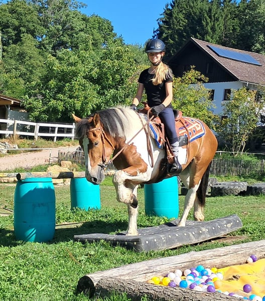 Kora eine Pony zum verlieben! Liebe Stute mit dem Herz am rechten Fleck, freundlich, menschenbezogen, immer bemüht und willig, tolle Optik, leicht zu reiten, sehr sitzbequem, absolut unkompliziert in der Herde, man muss sie einfach kennenlernen, 145 cm, 3 Jahre. Für Wander-, Gelände- und Freizeitreiten. Englisch und Western ist beides möglich. Offenstall und Herdenhaltung gewöhnt, Box ist auch kein Problem. Equidenpass vorhanden. Alle unsere Pferde kennen Bodenarbeit, unterschiedliches Gelände, Autos, landwirtschaftliche Maschinen, sowie Kühe, Esel, Schafe, Schweine, Hunde, Katzen und Hühner. Infos und Terminabsprache unter 08536-2890292 (AB vorhanden) oder 0157-78378455 (am Hof kein Mobilnetz). Bitte keine PN, Mail und WhatsApp Anfragen!! Sonntag Ruhetag. Zubehör und Transport günstig möglich. Jedem Kunden wird ein vertraglich festgesetztes Umtauschrecht von 6 Wochen eingeräumt. Preise sind Festpreise. Keine Anfragen auf Ratenzahlung erwünscht. Wer gleich mit Anhänger kommt und mitnimmt erhält 100€ Rabatt. Bei Kauf werden 1000€ in bar als Anzahlung fällig. Wer das Pferd gleich mitnehmen will, muss selbstverständlich komplett bezahlen. Wir absolvieren mit den Kunden einen Ausritt mit zwei Pferden Eurer Wahl, damit Ihr Euer Traumpferd kennenlernen und prüfen könnt ob es das richtige Pferd für Euch ist. Jeder Termin kostet 35€, egal ob reiten, vorreiten, bereitstellen, spazieren ... jeder weitere Reiter (Freundin, Freund, Schwester, Trainer...) bezahlt das selbe wenn er mitreitet, nur mal schauen kostet uns auch Zeit und somit 20€. Der Betrag wird beim Kauf eines Pferdes am selben Tag wieder erstattet. Aufgrund mehrfacher Vorkommnisse bitten wir darum wahrheitsgemäße Angaben über das Reitergewicht zu machen. Bei nicht wahrheitsgemäßen Angaben behalten wir uns vor, uns vor Ort gegen einen Proberitt zu entscheiden. Unseren Pferden zu Liebe möchten wir auch unseren gut gebauten Pferden nicht mehr als 120kg zumuten. Da es sich hierbei um ein lebendes Tier handelt, sind dies lediglich Eindrücke des Betreuers und keine zugesicherten Eigenschaften des Pferdes. Weitere Pferde/Ponys in meinen anderen Anzeigen oder auf Anfrage.