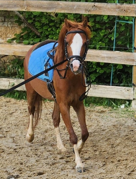 Zum Verkauf in fördernde Hände steht diese unglaublich süße Ponystute. Sie ist absolut brav, unerschrocken und trotz ihres jungen Alters bereits von Kindern zu händeln. Sie wird bereits im geführten Kinderreiten eingesetzt, was sie absolut brav und ruhig mitmacht. Aktuell wird sie von unserer 12 jährigen Tochter angeritten und kann bereits in allen drei GGA von etwas erfahrenern Reitern/Kindern frei auf dem Reitplatz geritten werden. Auch geführte Ausritte ins Gelände sind kein Problem für sie. Sie wurde auch schon mit Anfängern an die Longe genommen, auch hier zeigt sie sich stets freundlich und lernwillig. Aufgrund ihrer wirklich schönen Gänge und Figur können wir sie uns sehr gut auch als zukünftiges Turnierpony vorstellen. Ihre sehr ruhige und unerschrocken Art macht Sie aber auch für Ponyschulen oder Therapiebetriebe interessant. Natürlich ist sie schmiede- und verladefromm, geht barhuf und war bisher nie krank. Sie kennt sowohl Gruppen- als auch Einzelhaltung und im Sommer auch ganztägigen Weidegang. Aufgrund ihres Alters benötigt sie noch weitere Ausbildung, ist aber jetzt schon ein tolles Kinderpony, wenn Erwachsene unterstützen. Wir wünschen uns ein förderndes Zuhause für Sie. Aktuell wird sie bei uns nur 2 oder 3 mal die Woche bespaßt, was absolute zu wenig für sie ist. Anfragen und Videos gerne per WhatsApp unter 015111677809