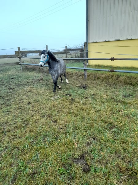 Dapper pony merrie, grijze schimmel, 4 jaar oud, gereden en aangespannen, kindvriendelijk, braaf bij de hoefsmid, goede gangen, regelmatig ontwormd. Alleen telefonisch contact.