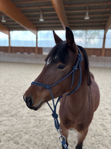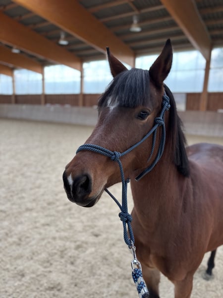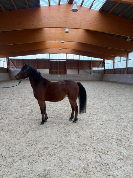 Loving Pony Mare (2021) – lively, eager to learn, and with an excellent character Our beautiful pony mare, born in 2021, is looking for a new home. She has grown up on our farm and is familiar with daily handling, various environmental influences, and social contact with other horses. She is very compatible within the herd. She knows both open stable and box stall management. Groundwork is well established; she is familiar with lunging (including with a saddle) and always shows attentiveness and motivation during training. The mare is well-behaved in handling, accustomed to the farrier and veterinarian, and has been regularly vaccinated, dewormed, and her teeth checked. In terms of temperament, she is lively, curious, and highly trainable – a wonderful partner for someone interested in further training. She is currently not yet ridden but has excellent prerequisites for versatile development. A healthy, spirited young horse with potential and charm – ready to find a caring and experienced owner.