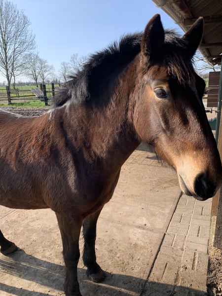 For Sale: Lovely D-Pony Mare (5 years old) Beautiful and reliable 5-year-old D-pony mare (withers height approximately 1.48 m). She has been used for recreational riding but shows great potential. She is lively and forward-going, yet always well-behaved and easy to handle. Suitable for various disciplines: jumping, dressage, and outdoor rides are no problem for her. • Hooves trimmed regularly • Calm and cooperative with the veterinarian • Loads easily onto the trailer • Vaccinations and deworming up to date • Periodically checked by the dentist A wonderful pony suitable for both recreational riding and for someone looking to further train and develop her. Ideal for someone seeking a reliable and versatile pony. 📩 Serious inquiries, please send a message for more information or to arrange a viewing.