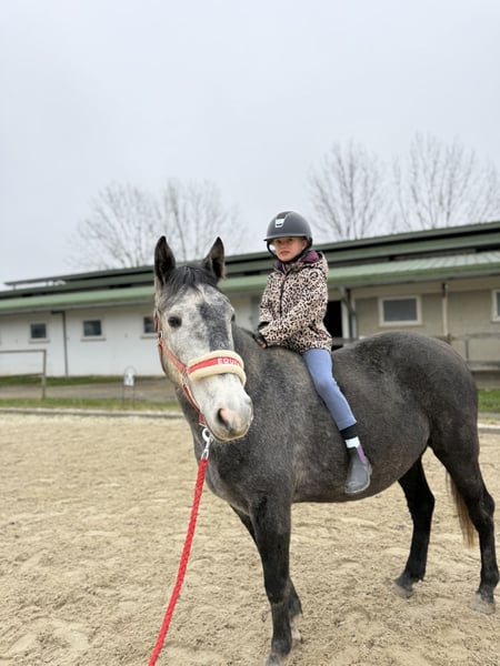 Lovely Gray Mare for Sale – Perfect for Continued Training Our charming pony mare, born in 2021 and therefore four years old, is looking for a new home. With a height of 148 cm, she is ideally suited for small riders and children. Thanks to her sturdy build, she also comfortably accommodates larger riders. She is friendly, curious, and very affectionate. Her current training level is appropriate for her age; she is being encouraged accordingly but not overburdened. She is ideal for further training and would also be a safe and promising pony for future pony sport. The mare is healthy, dewormed, and vaccinated. She is a wonderful pony for children and teenagers who enjoy shared leisure activities. If interested or for more information, please feel free to contact me. A meet-and-greet and trial riding can be arranged by appointment.