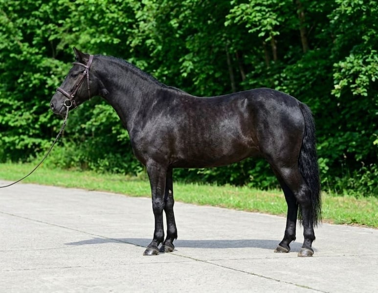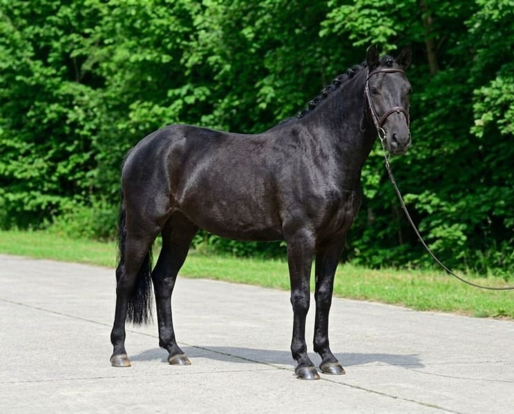 For sale is my beautiful 6-year-old black pony mare Fanni, with a height of 142 cm. She is completely healthy, regularly checked, and free of any bad habits. Her calm and balanced nature makes her an ideal choice for children. In the field, she is reliable both alone and in a group; she is not spooky and very well-behaved. She gets along well with other horses – during the day, she shares the pasture with several horses, and at night, she is stabled. Handling her is straightforward: she stands quietly for grooming, neither nervous nor spirited. She loads onto a horse trailer without any issues. Fanni shows talent in both jumping and dressage but is also excellent for beginners and for children learning to ride. Further information gladly provided via WhatsApp: 📞 +36 30 827 3182