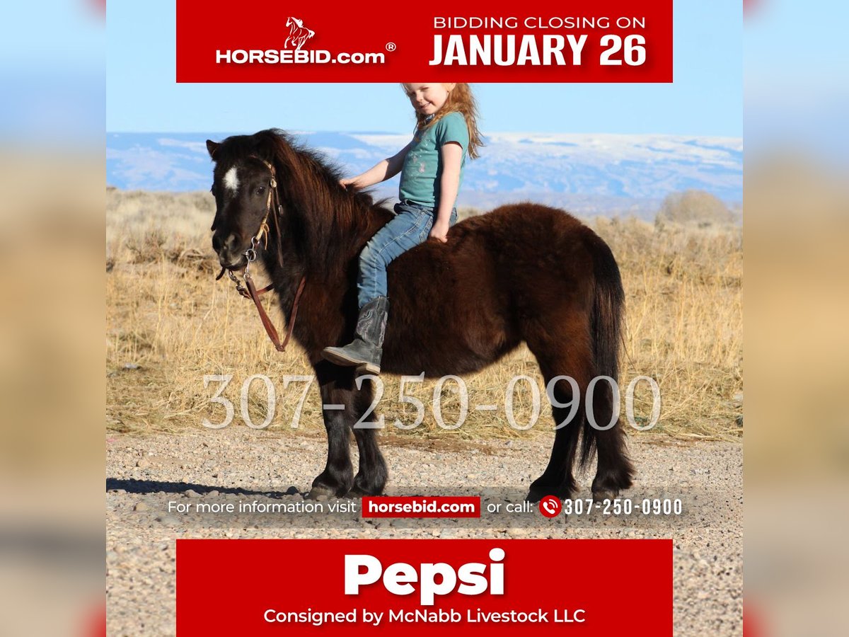 𝐉𝐀𝐍𝐔𝐀𝐑𝐘 ⭐️𝑨𝒍𝒍 𝑺𝒕𝒂𝒓 𝑳𝒊𝒏𝒆𝒖𝒑⭐️ Happening now thru MONDAY | JANUARY 26th - Available EXCLUSIVELY on HorseBid's website! For more details and to register visit: www.Horsebid.com CONSIGNOR CONTACT: McNabb Livestock LLC 307-250-0900 LOCATION: Cody, WY BREED: Mini REGISTERED: No COLOR: Black HEIGHT: 27" AGE: 6 GENDER: Mare Pepsi is a cute little pony. Our 4yr old has had fun playing with her. She is great for a lead line and good for you little kids to learn on. She will go through the obstacle course and has been trail rode outside. Pepsi is also broke to drive making her fun for the whole family. For more information call 307-250-0900