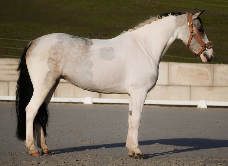 Iris ist eine 2018 geborene Ponystute ca. 146cm *Iris* bildschöne Stute in Sonderfarbe. Iris ist bereits erfolgreich mit Kindern auf dem Turnier gestartet und bereitet in der Dressur wie auch im Springparcour viel Freude. Sie geht alleine und in der Gruppe ins Gelände. Iris ist nicht umweltorientiert. Iris ist leicht in Anlehnung zu reiten und sitzbequem dazu. Ein Traumhaft schönes Pony Pferdehandlung Dederichs – Ihr Partner für den Pferdekauf Kontakt & Erreichbarkeit: Anfragen bitte ausschließlich telefonisch unter 0173/9792139 Montag – Freitag: 09:00 – 18:00 Uhr Samstag: 09:00 – 15:00 Uhr Sonntag: Ruhetag Folgen Sie uns auf Social Media! Erleben Sie unseren Alltag mit den Verkaufspferden auf Instagram, TikTok & Facebook unter Pferdehandlung Dederichs Rabatt: Bei sofortiger Mitnahme Ihres neuen Traumpferdes erhalten Sie zwischen 5 %– 10 % Rabatt Probereiten & Vorführen: • Probereiten: 30 € pro Pferd (max. 2 Reiter), Betrag wird beim Kauf angerechnet • Feiertage: Proberitt 50 € • Vorführung durch unsere Bereiter: 25 € pro Pferd (Vorreiten, Bodenarbeit etc.) Ankaufsuntersuchung & Transport: • Viele unserer Pferde besitzen bereits eine AKU • Sie können selbstverständlich Ihren eigenen Tierarzt mitbringen • Gerne organisieren wir eine Untersuchung • Wir unterstützen Sie auch gerne beim Transport ins neue Zuhause Weitere Verkaufspferde: In unserem Stall stehen weitere Verkaufspferde, die noch nicht online sind. Falls Ihr Traumpferd noch nicht dabei ist, zögern Sie nicht, uns zu kontaktieren. Wichtige Hinweise: • Stockmaß-Angaben sind geschätzt und nicht exakt nachgemessen • Alle Beschreibungen sind subjektive Einschätzungen des Verkäufers und keine zugesicherten Eigenschaften Weitere Informationen finden Sie unter: www.Pferdehandlung-Dederichs.de