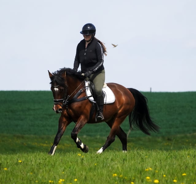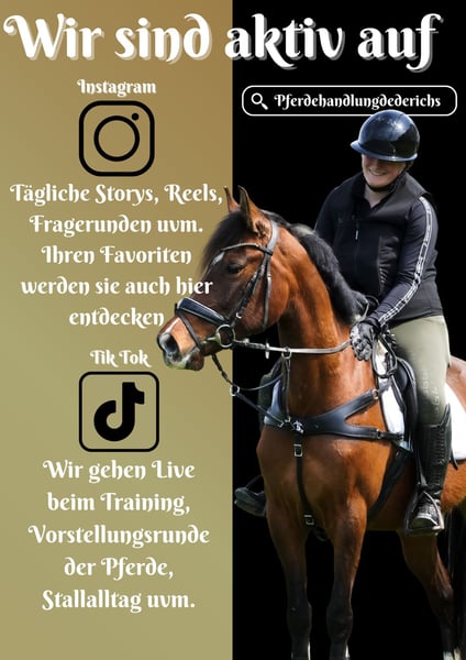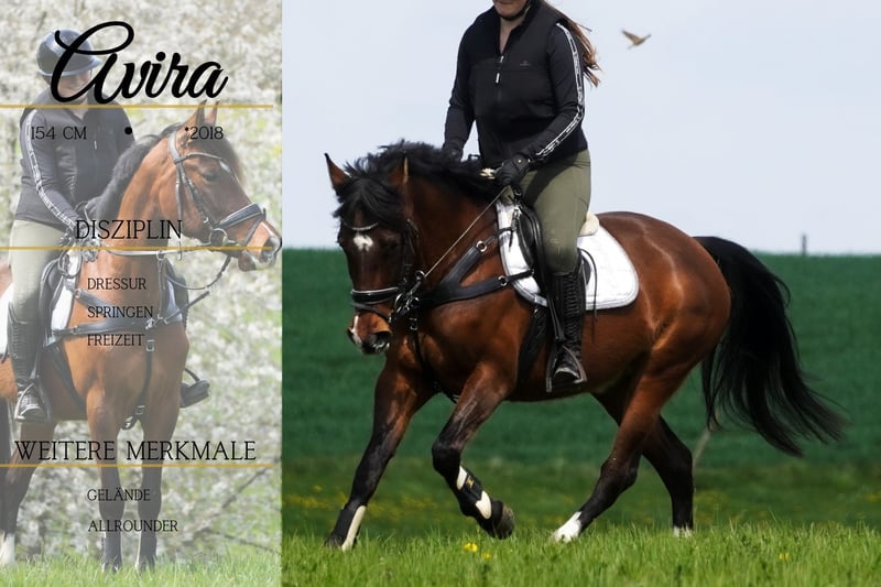 Avira is a mare born in 2018, approximately 15.4 hands, sired by Airon PP out of Samuel x Vlah SM. *Avira* is a stunning dream horse in every respect. She is very well-trained and moves beautifully in dressage, reliably jumps in the show jumping course, and is super cool in the terrain. She is suitable for riders of all sizes (the rider in the video is 176 cm), but even very small riders have already been able to sit comfortably on her back. She is honest, very relaxed, and confident, yet very rideable. Neither hot nor lazy, she is simply eager and easy to handle. Traffic, water crossings, and noise are no problem for this beautiful mare! **BE SURE TO WATCH HER VIDEO!** She is absolutely reliable on the course and always tries to make every distance. She is equally suitable for sport and leisure riding. With her, you can pursue ambitious goals or just enjoy a relaxed ride. Riding Avira always gives you a safe and good feeling. She is well-mannered, affectionate, and uncomplicated in handling. You can find a current video of her here in the ad or at the following link: https://www.youtube.com/watch?v=Nz_-AdiqeMA Horse dealing Dederichs – Your partner for horse purchase Contact & Availability: Inquiries please exclusively by phone at 0173/9792139 Monday – Friday: 9:00 a.m. – 6:00 p.m. Saturday: 9:00 a.m. – 3:00 p.m. Sunday: Closed Follow us on social media! Experience our daily work with sale horses on Instagram, TikTok & Facebook at Pferdehandlung Dederichs Discount: Get 5%–10% off if you take your new dream horse immediately. Trial riding & viewing: • Trial ride: €40 per horse (up to 2 riders), amount credited upon purchase • Holidays: Trial ride €50 • Demonstration by our grooms: €30 per horse (pre-riding, ground work, etc.) Pre-purchase examination & transport: • Many of our horses already have a pre-purchase exam (AKU) • You are welcome to bring your own veterinarian • We can organize an examination for you • We also gladly assist with transport to your new home Other horses for sale: We have additional horses for sale in our stable that are not yet listed online. If your dream horse is not yet available, do not hesitate to contact us. Important notes: • Estimated height measurements are approximate and not precisely measured • All descriptions are subjective assessments by the seller and do not constitute guaranteed properties