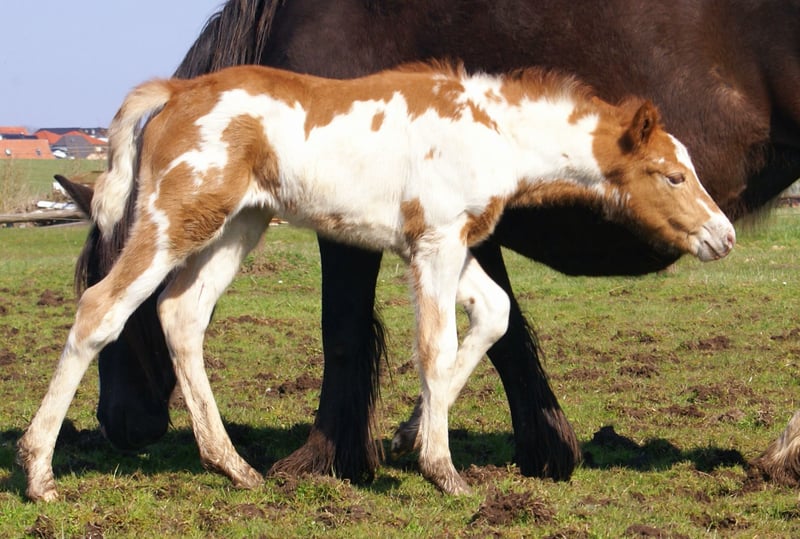 Fuchsschecke mit bernsteinfarbigen Augen, Vater ist ein Painthengst 150 cm, die Mutter eine kräftige Tinkerstute 150 cm, wüchsiges kräftiges Fohlen, aufgeweckt und neugierig, wächst im Herdenverband mit anderen Fohlen zusammen auf, regelmäßig entwurmt, es gibt bereits Nachkommen aus dieser Anpaarung welche besichtigt werden können, es ist immer ein gelungener Mix