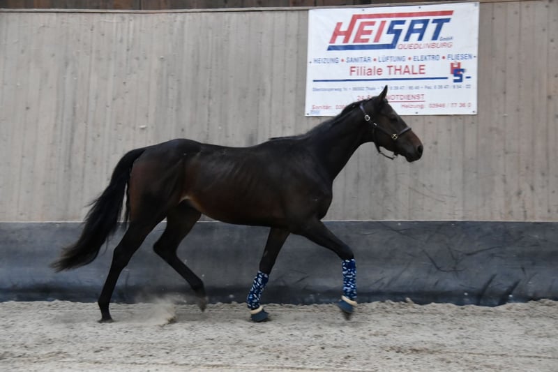 ✨ Raw diamond with a heart of gold is looking for his person ✨ Name: Leo Breed: Thoroughbred (Gelding) Age: 3 years (will soon be 4) Height: Will be provided later / Currently estimated at approx. [Your input] Color: Dark brown, without markings Description and Character Leo is a beautiful, typified Thoroughbred gelding who impresses with his extraordinary inner calm. At just 3 years old, he is already the epitome of a balanced and strong-minded horse. He has a heart of gold and is absolutely people-oriented and friendly in handling. This young man is a quick learner and ready to embark on a future together with his new owner. Training and Suitability Leo has been gently backed and shows himself to be very cooperative under saddle. • Comfort of seat: He is comfortable to sit on and is unflappable at work. • Suitability: Perfect for the ambitious leisure rider or for someone looking for a partner for classical dressage work. He has all the prerequisites to be developed calmly. • Tempo: He is a calm type who controls his forward drive and can be well regulated. Housing and Health Leo is an uncomplicated partner, both in the stable and in handling: • Housing: He is accustomed to box housing but also enjoys daily turnout and gets along well in a mixed herd. • Health: A current purchase examination (AKU) is available and can certainly be viewed. He is healthy and ready for relocation. Our Wish We are looking for a loving home for this treasure, where he will be further developed age-appropriately and with a lot of patience. He is not a sport device, but a friend for life! Location: 38828 Wegeleben Price: €5000 Contact: 01757297984 or Email Reitponyzuchtjk@yahoo.com Interested parties are kindly requested to send a meaningful message introducing themselves and the planned home for Leo briefly. For trial riding, we charge €30, which will be deducted from the purchase price.