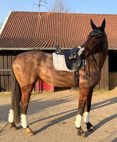 Tolle 6 jährige stute sucht ihren Menschen. Sweet Soroya ist eine 6 jährige stute, 165cm und stammt ab von Sarotti Mokka Sahne x Graf Remus. Sie besticht durch ihre Optik und ihrer drei guten Grundgangarten. Sie ist Dressurpferde A platziert mit 8ter Noten und beherrscht die L Lektion welche noch etwas gefestigt werden müssen. Sweet Soroya liebevoll Roja genannt ist für alle Sparten geeignet. Sie hat Spaß an der Dressur, dem Springen und geht auch gerne mal eine entspannte Runde in den Wald ob alleine oder in der Gruppe. Also ein kompletter Allrounder, ich könnte sie mir gut in der Vielseitigkeit vorstellen. Roja ist ein Arbeitstier und möchte gerne was tun aber auch wenn sie mal ein paar Tage hintereinander Pause hat ist sie brav. Dennoch ist sie kein reines Anfänger Pferd, da sie korrekt geritten werden möchte und einen einfühlsamen Reiter braucht der ihr aber dennoch klare Anweisungen gibt. Roja ist eine Charakter Stute und sucht sich ihre Menschen aus, wenn sie diese gefunden hat tut sie alles für ihre Menschen! Sie kennt boxenhaltung mit täglichem weidegang in der Herde, kennt es aber auch immer Sommer 24h draußen zu stehen. Ich wünsche mir für sie ein Zuhause wo sie ihren Mensch hat für den sie durchs Feuer gehen kann! Täglicher Weidegang oder Paddock ist ein muss! Ein kompletter TÜV aus Ende 2023 ohne Befunde liegt vor.