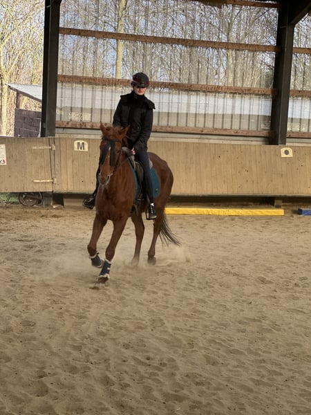 For sale is a 2019-born chestnut mare, approximately 15.3 hh, with full papers, who has been presented in the racing sport. She impresses with her athletic appearance, solid conformation, and honest character. This young mare is extremely gentle, human-oriented, and straightforward in daily handling. She is always friendly and cooperative when groomed, led, or in the stable environment. Even in unfamiliar situations, she remains calm and easy to handle. Thanks to her racing experience, she possesses a good basic education, endurance, and willingness to work. She is ideally suited for riders seeking a sporty, reliable horse with promising future potential.
