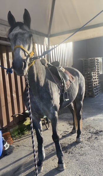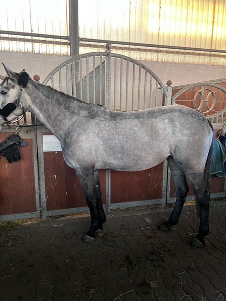 Schweren Herzens verkaufe ich meine 2017 geboren Schimmelstute Grace. Momentan ist sie ca 1.60cm gross (hinten stark überbaut), und noch im Wachstum. Im Mai wird Grace 5 Jahre alt. Da sie Schnell & wendig ist und gas geben & Springen ihre 2 Lieblingssachen sind eignet sie sich perfekt für die Vielseitigkeit oder auch Springen. Sie kennt Halle, Aussenplatz, Laufband, Gelände, Hufschmied, Tierarzt/Zahnarzt, Transporter, alles mögliche an Tieren -> Hunde, Katzen, Kühe, Ziegen, Lamas/Alpakas etc. Sie ist verkehrssicher und läuft entspannt neben schnell vorbeifahrenden Zügen (Strasse 2m neben gleis, keine wand). Autos, Lastwagen, Brücken, Tunnel, Baustellen etc sind auch kein Problem für sie. Sie geht alleine sowohl mit der Gruppe alle 3 Gangarten im Gelände, auch im dunkeln. Auf dem Platz oder in der Halle stören sie andere Pferde oder Musik nicht. Longieren kennt sie in jeder form. Freiarbeit macht ihr auch viel spaß. Grace ist ein sehr Charakterstarkes Pferd mit viel Temperament. Kinder und auch Kleinkinder sind sie geritten, jedoch braucht sie einen Konsequenten Reiter mit Jungpferde-Erfahrung, erst recht in diesem Alter. Sie möchte jeden Tag gefördert werden, daher kann ich sie mir nicht als Freizeitpferd vorstellen. Unverbraucht und noch nicht an Tunieren vorgestellt. Aktuelle Parcours Videos können gemacht werden. Ich suche ein 5* zuhause für Grace. Weide und viel Bewegung sind ihr wichtig. Preis der qualität entsprechend! Hier gilt PLATZ VOR PREIS. Grace kann jederzeit besichtigt werden. Um den Reit-Tourismus aus dem Weg zu gehen nehmen wir 20€ für einen Proberitt, der beim kauf natürlich rückerstattet wird. Bitte nur bei ernsthaften Interesse melden, Dankeschön ☺️