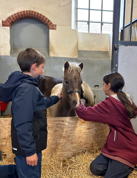 Joni ist ein ganz zauberhafter kleiner Kerl. Er wächst bei uns mit drei gleichaltrigen Jährlingen auf, in einer Herde mit insgesamt elf Classic-Ponys unterschiedlichen Alters, einem Welsh-Pony und zwei Hannoveraner-Stuten. Die Herde lebt ganzjährig im Offenstall mit Paddock und kommt täglich stundenweise auf die Wiese. Alle Jährlinge sind entwurmt und gegen Tetanus geimpft, außerdem werden sie alle paar Monate vom Schmied ausgeschnitten. Sie kennen Kinder, die um sie herumwuseln, Hunde, Straßenverkehr und einfach alles, was das tägliche Leben an Herausforderungen für kleine Ponykinder mit sich bringt. Joni ist ein eher zurückhaltender kleiner Mann und super lieb im Umgang. Er hat eine schöne Zeichnung im Gesicht ( auf dem ersten Foto ist er das Pony rechts ) und weiß, wie sich ein gutes Pony bewegen muss. Da er wie alle unsere Ponys sehr neugierig ist, ist es sehr schwierig, vernünftige Fotos zu machen, da sie immer am liebsten das Handy essen möchten - wenn die Fotos also nicht perfekt sind, bitte ich das zu entschuldigen. Joni wurde als Fohlen prämiert. Mutter ist die BPrLS Best Time von Clus, Vater ist der BPrPrLH Jaybee von Clus. Bei ernsthaftem Interesse gerne bei mir melden unter 0170 / 1125230.