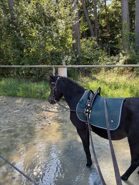 Sissi (Kleine Wolke von Bludschen) 3 Jahre alte Stute. Stockmaß ist aktuell 106cm und Gewicht liegt ~ 150kg. Mit vollen Papieren. Sissi ist eine super treue und intelligente Pony Stute. Sie ist Kinder, Hunde und andere Pferde gewohnt. Sie ist voll geimpft, entwurmt und Schmiedefrom. Sie hatte von Anfang an am rechten Knie lange Bänder, wohl vom Wachstum, sodass ihre Kniescheibe öfters raus gesprungen ist. Physio und Tierarzt meinten dies auch. Das ist seit einem halben Jahr nicht mehr passiert und vermutlich verwachsen. Sie hat 3 tolle Grundgangarten und Freiarbeit macht ihr viel Spaß. Meine Kinder 3 und 5 können gut auf ihr reiten. Longieren macht Sie auch sehr gut. Ein paar Tricks kann Sie auch und hat Spaß daran. Sissi ist super geeignet als Kutschenpony. Eingefahren ist Sie noch nicht. Vom Boden ist/ wurde Sie schon etwas an Langzügel gewohnt. Sie ist Boxenhaltung gewohnt. Steht aber jeden Tag mit anderen Pferden/Ponys draußen. Ich gebe Sie ab, da ich ihr zeitlich nicht mehr gerecht werde. Es ist kein Not Verkauf. Sie soll ein Traum Endplatz bekommen.