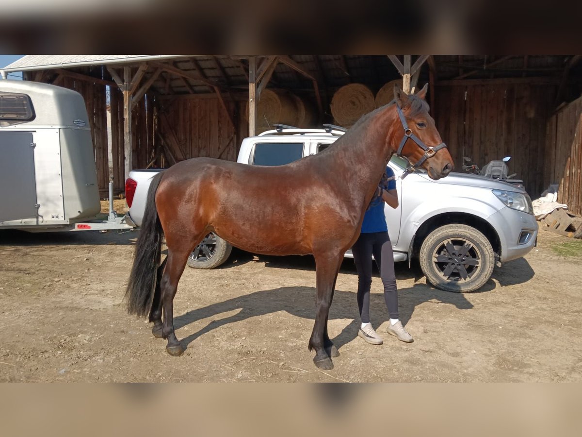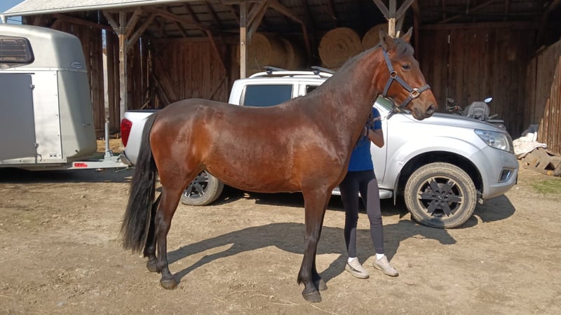 “Baroness is a 4-year-old pony mare currently jumping 60 cm, with great potential for professional show jumping, dressage, and endurance. She is exceptionally well-schooled and responsive, able to be ridden with minimal aids (as light as two fingers), demonstrating excellent training and rideability. She has a calm, kind temperament and is excellent with children. The grandsire is grey, so she may genetically produce grey offspring as well.”