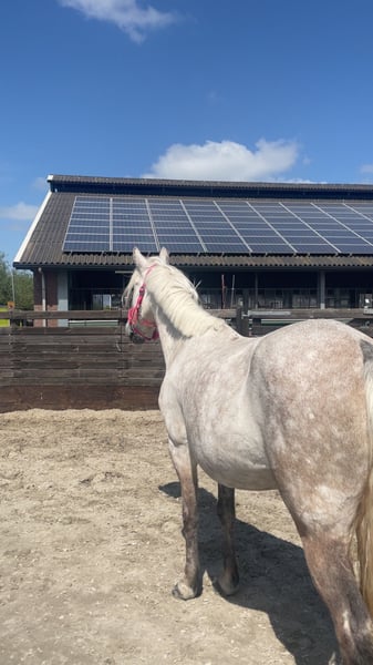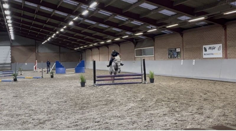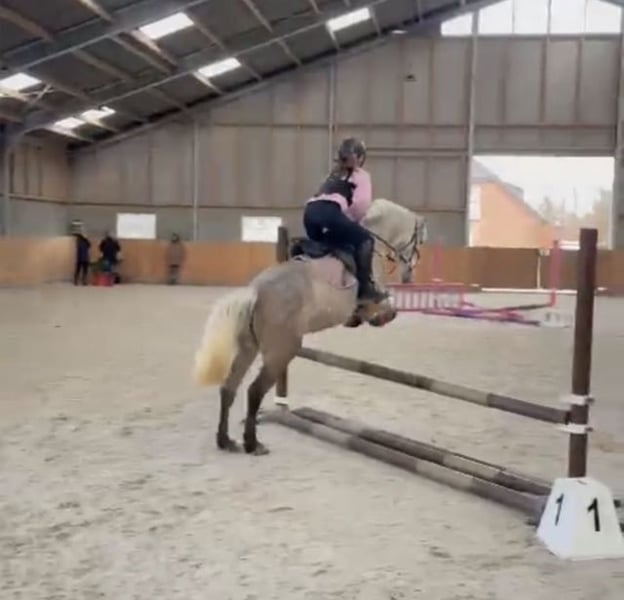 Onze lieve merrie Esmee van zes jaar wordt op 1 april zeven. Ze is een echte knuffelkont, heel betrouwbaar en vriendelijk in de omgang. Ze heeft op onze stal al sprongetjes rond de 70 à 80 centimeter gemaakt en is heel werkwillig, met zeker potentie om nog hoger te springen. Ze heeft nog niet veel wedstrijdervaring, maar ze pakt alles snel op. Esmee is geen beginnerspaard, want ze kan af en toe wat pittig zijn, maar wel een heerlijk maatje voor iemand die op zoek is naar een betrouwbare en leergierige partner zonder stalgebreken. Vraagprijs 8,000 Spullen erbij Meer info kunt u bellen of appen 0628840615