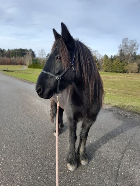 Ciena de Kingmaker, Dales Pony Stute, geb. 05/2012, 1,38 m groß (deckt Reiter bis 1,75 m gut ab, wenn diese nicht mehr als 60 kg wiegen) - volles Papier, registriert bei der Dales Pony Society in England - ein- und zweispännig eingefahren - freizeitmäßig geritten auf dem Platz und im Gelände – von Erwachsenen und Kindern - Horsemanship, Gelassenheitstraining, Bodenarbeit, Longieren, Spaziergänge - sehr menschenbezogen, klar im Kopf, hat ein angenehmes Maß an Energie, ist aber jederzeit händelbar, zuverlässig im Gelände - geländesicher, schmiede- und verladefromm - rangniedrig, verträglich mit Stuten und Wallachen, in verschiedenen gemischten Herden stets problemlos - lebt am liebsten im Offenstall - barhuf, war nie krank (kein Ekzem, kein EMS, nie Rehe), Robusthaltung gewohnt, langlebige Rasse - stets up to date mit Impfungen, professioneller Hufpflege, Zahnbehandlung, Entwurmungsmanagement - 24/7 Weide aufgrund der Rasse nicht geeignet, stundenweise kein Problem - 24/7 Heufütterung im Offenstall möglich, aktuell bei zeitgesteuerter Fütterung gehalten - kann ihr gesamtes Zubehör mitbringen - keine Abgabe an Händler oder Schulbetriebe - Verkauf aufgrund von Beendigung der Pferdehaltung Ciena sucht einen Lebensplatz bei einem Menschen, der sie und die seltene Gelegenheit, ein Pony dieser wunderbaren Rasse zu bekommen, schätzt. Wer Pferde nicht als Sportgeräte, sondern als Freunde betrachtet, kann hier eine Freundin fürs Leben finden. Ich freue mich auf Ihre/deine Nachricht! Der Preis ist verhandelbar.