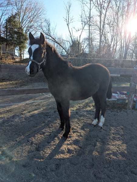 Zum Verkauf steht ein vielversprechendes deutsches Reitpony-Hengst – perfekt zum decken und als späteres Reitpferd Dieser Rappe überzeugt nicht nur durch seine tolle Farbe sondern auch durch sein gutes Potential. Dieser wunderschöne Rapphengst wurde im Jahr 2025 (12.04.2025) geboren und überzeugt durch sein charmantes Erscheinungsbild sowie sein freundliches Wesen. Mit einem Stockmaß von derzeit ca. 130 cm und seinem Alter von 9 Monate hat er einen sehr schönen, ausgeprägten Körperbau. Der Hengst ist geimpft und regelmäßig entwurmt, gesund und gut sozialisiert. Seine elegante Erscheinung und sein angenehmes Temperament machen ihn zu einem tollen Begleiter. Bei Interesse kann die Mutter mit erworben werden! Siehe Fotos, auf dem letzten Bild ist der Vater zu sehen! Bei Interesse oder weiteren Fragen stehe ich Ihnen gerne zur Verfügung. Decken möglich – bei Interesse bitte gesondert anfragen.