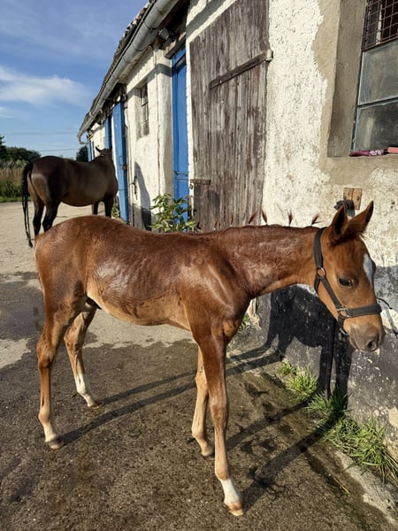 Destino‘s Don‘t worry be Happy, kurz um Happy Dieser wunderschöne, charmante, nervenstarke und Neugierde junge Mann in dunklere Fuchsjacke darf ab Dezember ausziehen und seine neuen Besitzer um den Finger wickeln. Er ist absolut Menschen bezogen und kennt alles was ein kleiner Ponymann kennen sollte. Am 19.07.25 waren wir mit ihm in Groß Viegeln, wo er als Elite Fohlen prämiert wurde. Video gerne auf Anfrage. Geboren am 27.05.2025 Abstammung: V.: Elitehengst Destino R MV.: Classic Dancer lll Weitere Abstammung, bitte den Bild entnehmen. Bei weiteren Fragen gerne schreiben