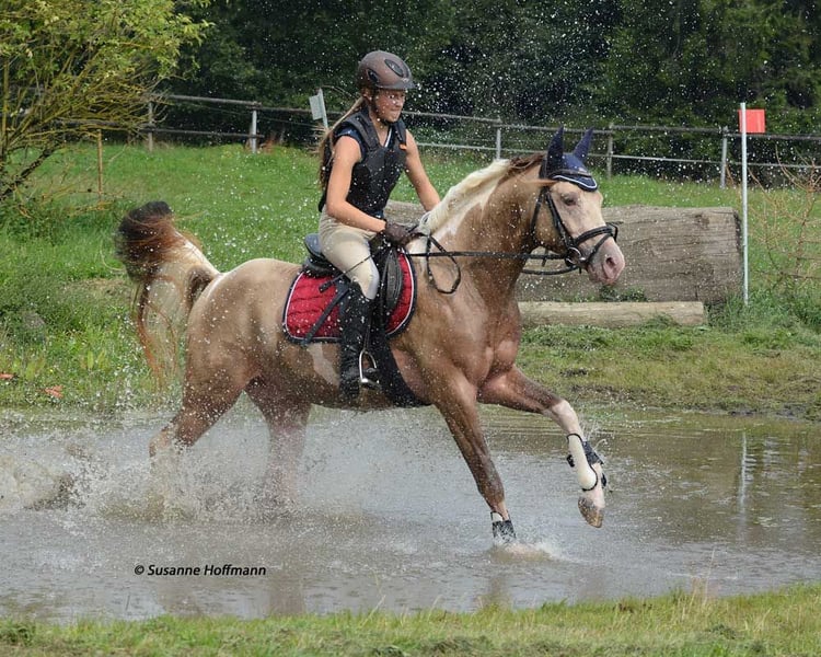 To źrebię ogierka nie tylko wyróżnia się kolorem i jest piękne, ale także ma absolutnie wymarzoną osobowość. Jest towarzyskie, ufne i łatwe do wychowania, co sprawia, że nie pozostawia żadnych życzeń niespełnionych. Jego matka to klacz premiowana, a ojciec to nawet ogier hodowlany, a jego 2-letnia pełna siostra również jest dostępna do obejrzenia. Starszy pełny brat jest nawet ogierem z licencją. Jesteśmy bardzo szczęśliwi, jeśli mały po prostu stanie się koniem rodzinnym, niezależnie od tego, czy będzie to tylko koń do rekreacji, czy z ambicjami sportowymi. Ostatnie zdjęcia pokazują matkę i ojca.