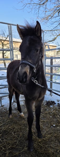 Zum Verkauf steht ein wunderschöner Deutscher Reitpony Hengst, geboren im Jahr 2025. Dieses beeindruckende Pony besticht durch sein elegantes Buckskin-Fell (vom Labor geprüft). Fohlenchampionat - Reservesieger Bundeschampionat 3. Platz Wurde bereits 2x geimpft Tetanus/Influenza und beim Hufschmied vorgestellt. Bei Interesse oder weiteren Fragen stehe ich Ihnen gerne zur Verfügung. Besichtigung nach Absprache möglich.