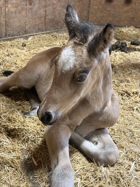 Premium foal! Born: March 27, 2025 This charming stallion impresses with his friendly nature and high willingness to learn. He already shows promising approaches for dressage and has the potential to develop into an excellent sports partner. He is growing up in a species-appropriate environment and is well-socialized. If you are interested or need further information, please feel free to contact me. Visit us and see for yourself this wonderful horse!