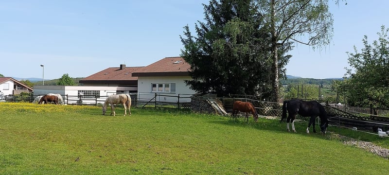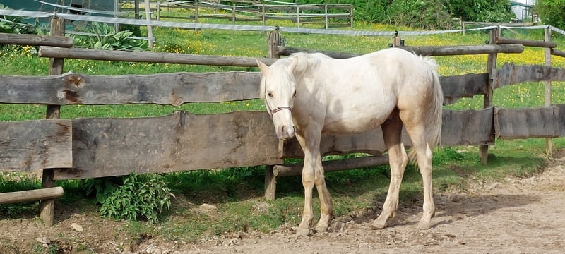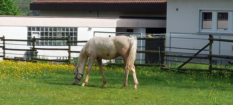 *Der oder Keiner vom Filstal* ist ein 2.5 jähriger Hengst. Er ist einer der wenigen Nachkommen des Hengstes Dublin. Dublin stammt ab von Donchester und geht somit zurück auf Don`t Worry. Die Hengst sind durch ihre Eigenleitstung bekannt. Dublin ist nach seinem ersten Jahrgang ebenfalls zurück in den Sport gegangen und präsentiert sich mittlerweile 5-jährig erfolgreich in Prüfungen bis Klasse L. Seine Mutter ist die Staatprämienstute Reuschbachhofs Jerry Hall. Sie stammt ab über Molenhorns Pasja. Mütterlicherseits die ebenfalls prämierte Reuschbachhofs Julia Stegner, die bereits Hengstmutter ist, und in ihrem Pedigree Namen wie Golden Rock und Hesseteichs Golden Dream trägt. Ein Hengst also mit einer guten Abstammung. Über die Veranlagungen der Eltern wächst hier ein doppelveranlagter Junghengst heran, der sich ins Endmaß wächst. *Keiner* wie er bei uns heißt ist brav, kennt Hufschmid und Tierarzt ist regelmäßig entwurmt und geimpft und herdenverträglich. Keiner ist ein eher schüchternes und rangniedriges Pony, da sicher zu einem Kinderpony heranwächst. Keiner wird verkauft, da auf der Reittherapieanlage genügend Ponys in der Nachzucht zur Verfügung steht. Er ist weder ein Notverkauf, noch muss er sofort umziehen. Er wird gerne an Aufzüchter verkauft, die ein gute Pony erkennen und der Qualität entsprechend fördern möchten. Mittlerweile ist er anlongiert und zeigt sich willig. Ein anschauen der Mutter ist ebenfalls möglich. Update: Er wird zur Körung vorbereitet und daher schonend gearbeitet. Der Preis wird sich angleichen.