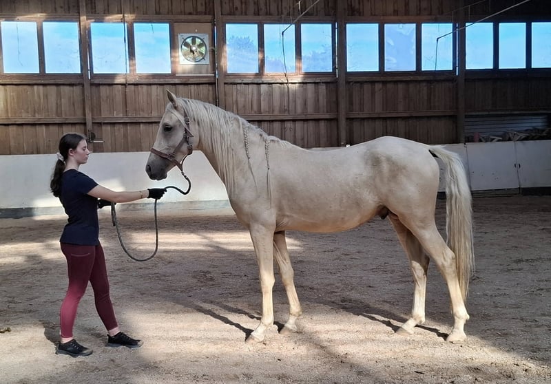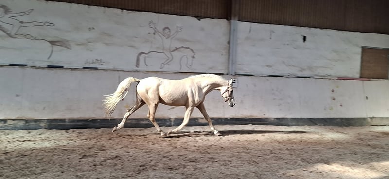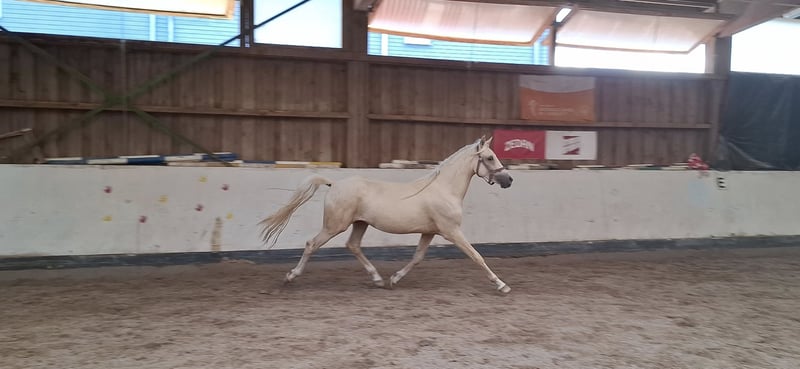 *Keiner vom Filstal* is a 2.5-year-old stallion. He is one of the few offspring of the stallion Dublin. Dublin is a descendant of Donchester, tracing back to Don’t Worry. The stallions are well-known for their strong conformation and temperament. After his first foal crop, Dublin returned to competition and now, at five years old, he successfully competes up to class L. His dam is the state premium mare Reuschbachhofs Jerry Hall. She descends from Molenhorns Pasja. On the dam’s side, there is also the premium mare Reuschbachhofs Julia Stegner, who is already a broodmare and carries in her pedigree names like Golden Rock and Hesseteichs Golden Dream. This is a stallion with a solid pedigree. Through his parentage, a double-licensed young stallion is developing, expected to reach full height. *Keiner*, as we call him, is well-behaved, familiar with farrier and veterinarian, regularly wormed and vaccinated, and herd-friendly. He is a rather shy and subordinate pony, likely to develop into a children’s pony. Keiner is not for sale out of necessity, as the riding therapy facility has enough ponies in the breeding herd. He is neither a distressed sale nor needs to be sold immediately. We prefer to sell him to breeders who recognize his potential and wish to develop him further according to his quality. He is now longeing willingly and shows good cooperation. Viewing the dam is also possible. Update: He is being prepared for licensing with gentle training. The price will be adjusted accordingly.