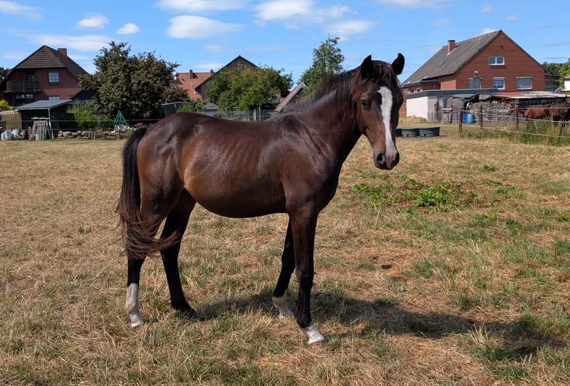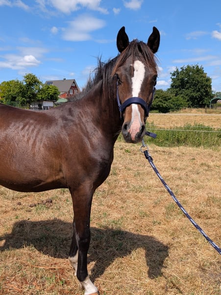 Dieser wunderschöne, wirklich super brave und Bewegungsstarke Reitponyhengst sucht schweren Herzens ein Zuhause. Er ist im März 2024 geboren und vom Typ sowie vom Charakter wirklich ein Traumpony. Ähnelt er einem Hund, als einem Pony. Er hat volle Papiere und ist als Fohlen prämiert worden. Sein Vater ist der wunderschöne Hengst Nablissimo und sein Opa New Classico. Beide lassen ebenfalls keine Wünsche offen (Bilder im Anhang). Seine Mutter ist sowohl vom Wesen als auch im ganzen Charakter eine wundervolle Stute gewesen. Er ist Herdenverträglich, Schmiede und verladefromm, Straßensicher , kinderlieb, kennt Hunde und ist Halfterführig. Kennt das ganze Fohlen ABC! Er wird im Maß bleibenund ist jetzt schon eine totale Schmusebacke. Geimpft Entwurmt Dem Hufschmied vorgestellt Wer ein Pony mit späteren Kör Aussichten sucht oder ein Partner mit dem er alles erreichen kann, ob im Dressursport oder im Vielseitigkeitsbereich hat hier ein Pony für alle Disziplinen. Telefonisch gerne unter 0176 80026980 melden.