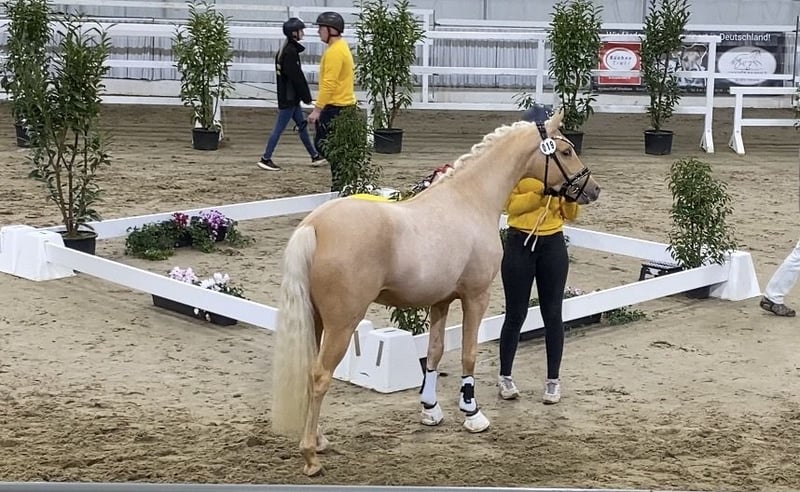 A future FEI and championship pony. Very clear-minded, absolutely honest, and great to handle. Always has the best attitude. Trailering – no problem – stands like a rock. Loves exploring new environments. Three excellent gaits. Dreamy appearance, super agile over fences, and a wonderful temperament. Outstanding dam line – by Prometheus out of Flying Dream x Derano Gold. From this lineage come licensed stallions such as White Diamond B, Flamenco Star (Team European Champion), Nations Cup winner, Derbino, Campari WE (FEI successful – European Pony Championships), Domingo Dancing (Semmieke Rothenberger), Dancing Fox (Grand Prix successful), and other sport ponies including Dujardin B by Deinhard B and For Pleasure B (show jumping). An incredibly talented pony that could not be more promising. A top-tier future in the arena and also as a hunter. With a lovely height of currently 146 cm, he will definitely stay within the measurements. Soon to be ridden and available for purchase now!
