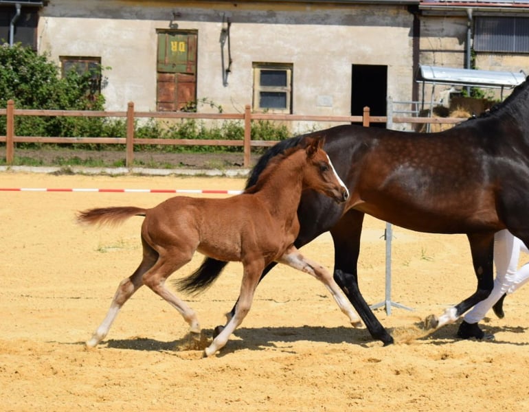 **Ogłoszenie sprzedaży: Ogier Niemieckiego Kucyka Sportowego** Na sprzedaż jest obiecujący ogier Niemieckiego Kucyka Sportowego, urodzony w 2024 roku. Ten uroczy gniady zachwyca swoim atrakcyjnym eksterierem oraz wzrostem wynoszącym około 147 cm (szacowane w wieku 3 lat), co czyni go idealnym partnerem do sportu jeździeckiego / skoków lub nawet do hodowli. Jego potencjał w ujeżdżeniu już teraz objawia się w ruchach, które charakteryzują się elegancją i ekspresyjnością. Ogier ma doskonałe pochodzenie, które stwarza mu najlepsze warunki do udanej kariery w sporcie i hodowli. Ten młody ogier to nie tylko prawdziwa ozdoba, ale także niezawodny towarzysz o przyjaznym usposobieniu. Idealnie nadaje się dla ambitnych jeźdźców, którzy szukają utalentowanego młodego konia zarówno do sportu, jak i do hodowli. W przypadku zainteresowania i po więcej informacji zapraszamy do kontaktu.