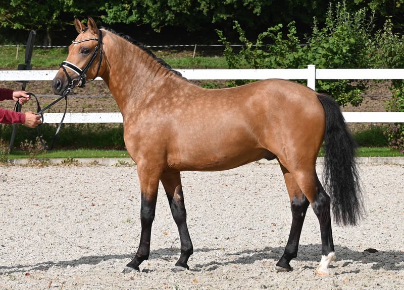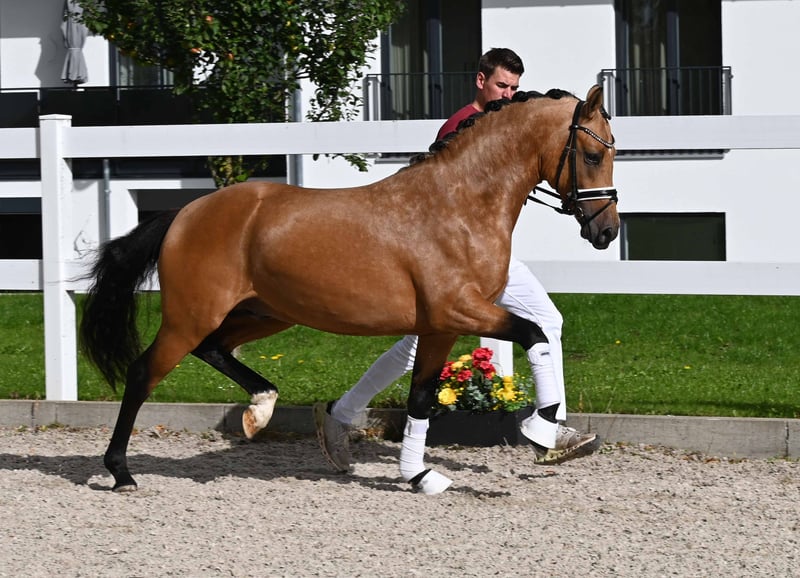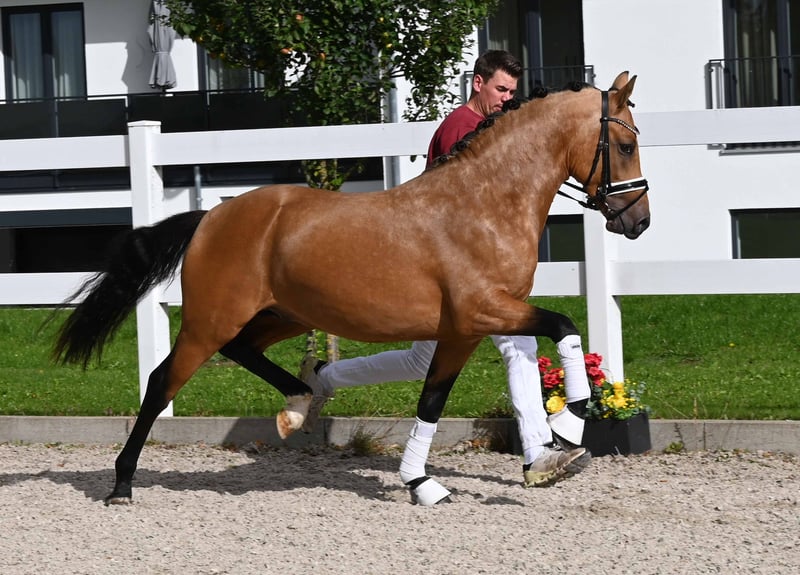Hier geht's zur Kollektion und Online-Registrierung: https://auktion.pzvbw.de/auctions MwSt. 19 % Kraftvoller Youngster aus einem hoch erfolgreichen, vielseitig veranlagtem Mutterstamm. Powerful youngster from a highly successful, versatile damline M: gek. Sohn Steendiek’s Cinemax v. FS Chambertin; St. Marla v. Morgensterns Dalai (Dr. A) MM: 2 gek. Söhne: St. Hemmingway v. Heartbreaker (Dpf. A) & St. Highlander v. Heartbreaker (Dr. L); Sportponies Melinda v. Aron N (Spr. M), Mona-Lisa v. Holst. William (Spr. L), Caruso v. Calvados (Fa. S), Wislander v. Windsor (Spr. A), Haakon v. Heartbreaker (Fa. M), Casper v. Champion (Spr. A) MMM: gek. Sohn Cap Cennedy N v. Campari (Spr. L); Sportponies Hot Summer v. Hotspot (Fa. M), Miriam v. Magnum (Dr. L), Marietta v. Giorgio (Spr. A), My Mikado v. My Kennedy (Dr. A), Marysan v. Giorgio (Spr. A), Mayfair v. Don Gregory (Dr. A), Don Primero v. Don Gregory (Dr. A), Magic Welcome v. Windsor (Dr. A