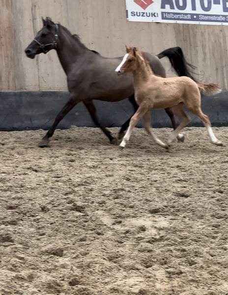 **For sale: German riding pony stallion, Red Dun, year of birth 2024** We are offering a beautiful German Riding Pony stallion with the rare color Red Dun for sale. Born in 2024, he has a height of 148 cm and is a real eye-catcher. This talented stallion shows great potential in dressage, jumping and eventing. He is ready to go to competitions with you and conquer the world. Not only his looks and talent are remarkable, but also his character. He is lovely to handle and always shows his best side. Our stallion is in top health. He has been wormed regularly and kept in a suitable environment. If you are looking for a talented, good-looking and lovable partner, then our German Riding Pony Stallion is just the right thing for you. Suitable for show jumping, eventing, dressage or driving, he is easy to handle, in good health, regularly vaccinated and wormed, kept in a suitable location and ready for new challenges. Please do not hesitate to contact us if you require further information or would like to arrange a viewing. We look forward to meeting you and your future champion.