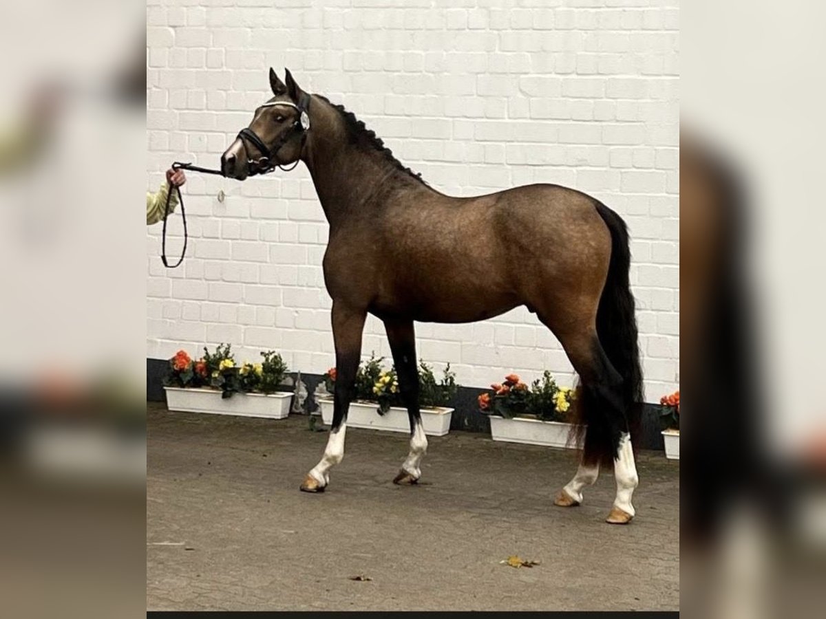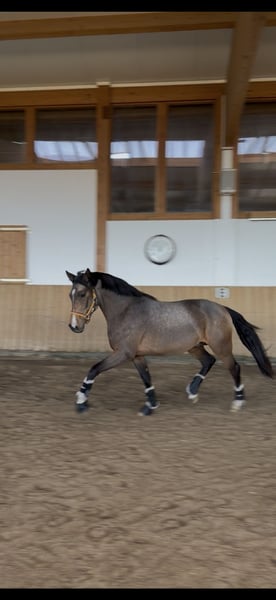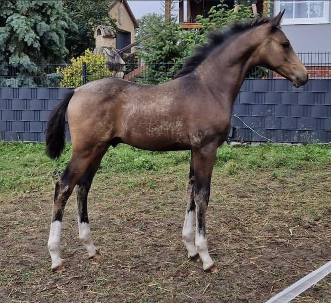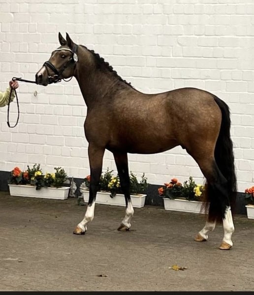 Verkaufe deutsches Reitpony Hengst – Buckskin, geb. 2023 Zum Verkauf steht ein wunderschöner deutscher Reitpony-Hengst, geboren im Jahr 2023. Sein ansprechendes Buckskin-Fell und vier mal weiße Stiefel machen ihn zu einem echten Blickfang. Der junge Hengst ist bestens für den Dressursport geeignet und zeigt bereits viel Talent und Lernbereitschaft. Er ist freundlich im Umgang und hat eine vielversprechende Zukunft vor sich. Er war Siegerfohlen bei der Eintragung und ist aktuell gut anlongiert. Sein Vater César war Siegerhengst des 30- Tage-Tests in Münster. *Video von zuhause ohne Eisen. Bei Interesse oder weiteren Fragen stehe ich Ihnen gerne zur Verfügung.