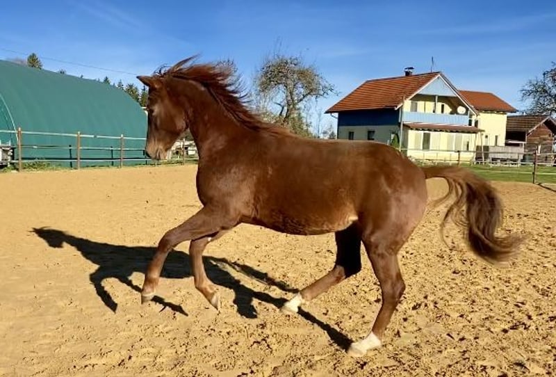 Aufgrund privater Schicksalsschläge sind wir auf diesem Wege auf der Suche nach einem neuen Zuhause für unseren wunderschönen 1,5J (vermutlich XXL) Reitponyhengst. Feuerrote Jacke im Sommer, ganz dunkel im Winter. Sehr freundlich und verschmust, neugierig-offen mit angenehmen Temperament kann der junge Mann alles, was man in seinem Alter kennen muss. Steht in einer reinen Hengstgruppe, wird regelmäßig geputzt, spazieren geführt usw. Hufe, Wurmkur, Impfung, alles regelmäßig und professionell durchgeführt. Er ist mir sehr schwungvollen Gängen ausgestattet und trotz seiner langen Beine schon prima balanciert. Er wächst tüchtig und entwickelt sich sehr harmonisch. Kann ihn mir sehr gut als Buschpony vorstellen, jedoch ebenso in Dressur und Springen. Vater: Habitus MV: Top Dubidu Fohlenprämie erhalten Traumhafter Charakter. Wir würden ihn gerne behalten und seine weitere Entwicklung sehen, sind aber körperlich leider sehr eingeschränkt unvorhergesehen. VB 5000 Platz vor Preis, gerne in fördernde