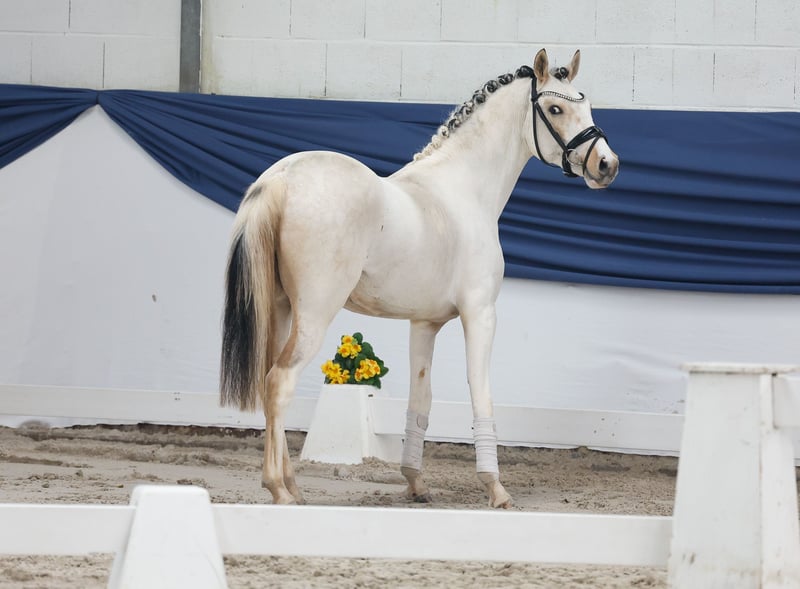 In unserer Kollektion stehen streng selektierte Youngster f�r alle Anspr�che: Ausbildungs-, Zucht- und Kinderponys Hier gelangen Sie zur Gesamtkollektion: https://ponyforum.auction Leider hat der hübsche Falbschecke Dazzle mit dem Scheren viel Farbe verloren und man kann seine hübsche helle Scheckung aktuell gar nicht mehr so richtig erkennen! Aber diese außergewöhnliche Färbung wird ja wiederkommen… wir haben das Signalement aus seinem Pferdepass mit in die Fotos gestellt, so kann man seine Färbung zumindest erahnen. Seine Scheckung hat Dazzle von seiner Mutter geerbt, einer waschechten Lewitzerstute. Diese robusten Allrounderponys sind mit ihrem sensationell gutmütigen Charakter und einer trotzdem bestehenden positiven Sporteinstellung sehr beliebt. Und auch Dazzle scheint von seiner Mutter nicht nur die Scheckung geerbt zu haben, denn auch er ist ein sehr ausgeglichenes und freundliches Pony mit besten Charaktereigenschaften. Hier wächst ein klasse Familienpony heran, der zukünftig jeden Spaß mitmachen wird!