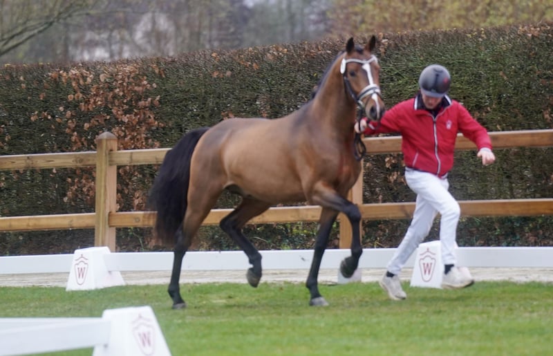 Vends un étalon de poney de dressage allemand – Parfait pour la compétition ! Nous proposons à la vente un magnifique étalon de poney de selle de couleur baie, né en 2023. Avec une taille au garrot de 147 cm, il est idéal pour les cavaliers ambitieux à la recherche d’un cheval talentueux et prometteur. Sa silhouette élégante et sa grande envie d’apprendre en font un partenaire très prometteur pour le dressage. Il réalise avec aisance et talent ses exercices de saut en liberté. Pour toute question ou information complémentaire, je suis à votre disposition. Une visite peut être organisée sur rendez-vous. Joli jeune talent pour la reproduction et la compétition ?