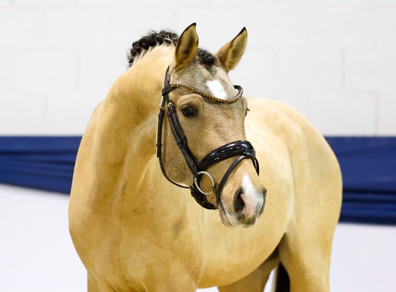 In unserer Kollektion stehen streng selektierte Youngster f�r alle Anspr�che: Ausbildungs-, Zucht- und Kinderponys Hier gelangen Sie zur Gesamtkollektion: https://ponyforum.auction Ein gekörter XL-Hengst aus dem 1. Jahrgang des viel besprochenen Gold Garants bereichert unser Auktionslot! Der typ- und bewegungsstarke Zöthens Goldstern begeisterte mit seiner hohen Grundqualität und Präsenz schon die Körkommission in Prussendorf und erhielt ein positives Körurteil. Mit seinen langen Linien und der großen Aufmachung wird Goldstern zukünftig das perfekte Damenreitpferd sein, ein gang- und typstarkes XL-Pony als absoluter Eyecatcher im Stall. Bestes Dressurblut fließt übrigens auch durch den Mutterstamm in seinen Adern, so steht hier u.a. der Erfolgsvererber Belissimo M, der besonders durch seinen Sohn Benicio neue Maßstäbe in der Dressurpferdezucht setzen konnte. Goldstern ist schon sehr gut longiert und er kennt - und liebt - das Freispringen.