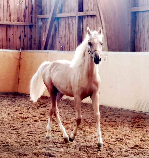 Guillaume è nato il 17 giugno 2022. Nonostante la sua giovane età, colpisce già per la sua sufficiente espressione da stallone. È alto e raggiungerà la sua altezza finale. Inoltre, è costruito correttamente e ha 3 andature di base superiori alla media, che migliorano di giorno in giorno. Ha ricevuto il premio d'oro alla mostra dei puledri, dove le sue andature di base e la sua tipologia sono state particolarmente enfatizzate. La sua fattrice Normandie ha completato con successo il suo SLP e ha ottenuto il titolo di premio statale. La sorella piena ha avuto successo fino al livello avanzato di dressage in America. La linea della madre ha prodotto pony sportivi di grande successo. La nonna Visa è sorella piena degli stalloni Zhivago (S dressage) Sydney e Santiago e dell'eccezionale cavalla Veronika. Video su richiesta. Le informazioni fornite sono una descrizione non vincolante e non rappresentano caratteristiche garantite. Il venditore non è responsabile di errori, errori di inserimento e di trasmissione dei dati.